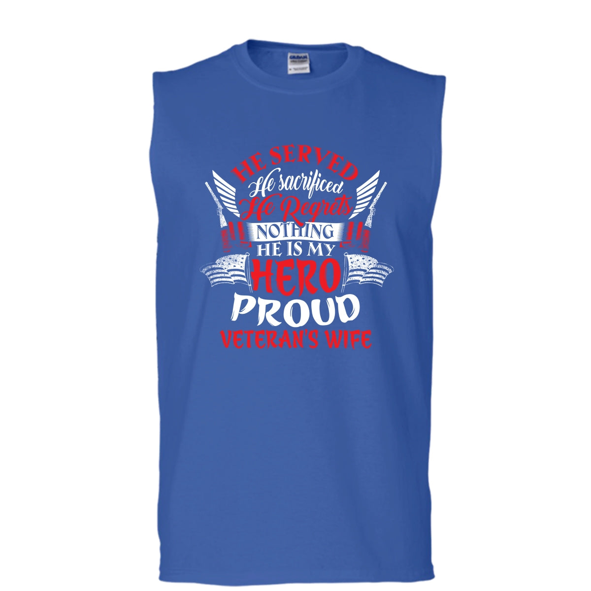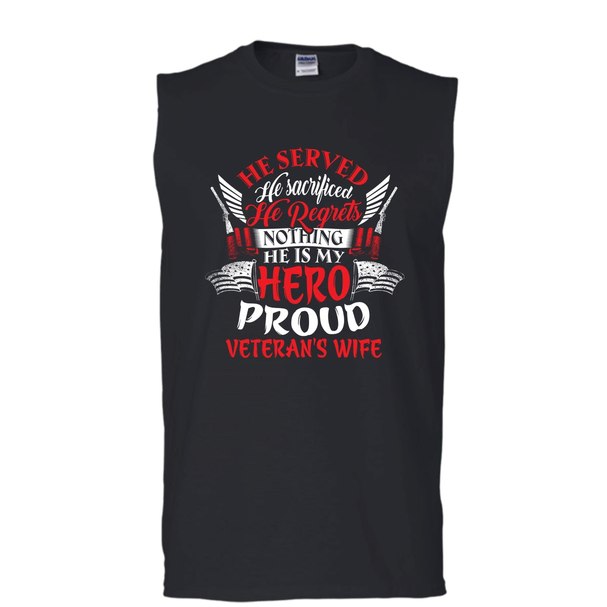 He Served Shirt, Prou Veteran's Wife Shirt, Cool Veteran Shirt (Men's Cotton Sleeveless)
