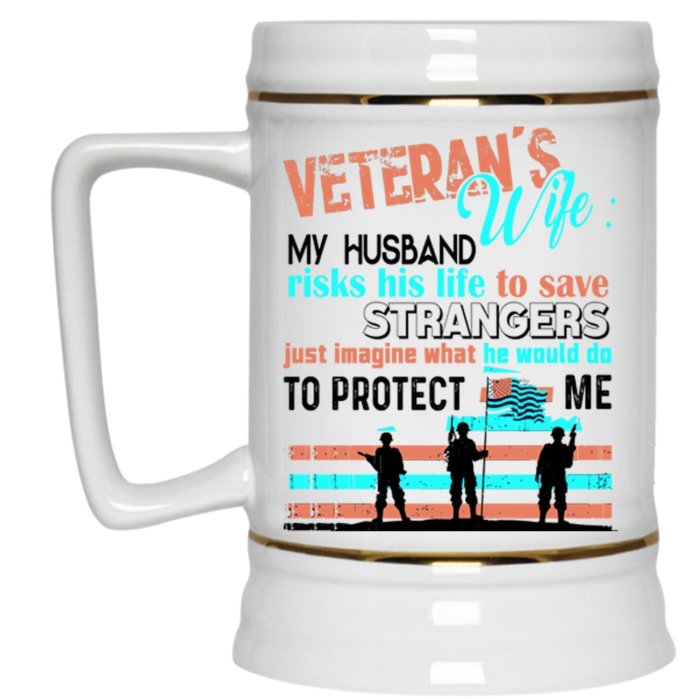 He Would Do To Protect Me Beer Stein 22oz, Veteran's Wife Beer Mug