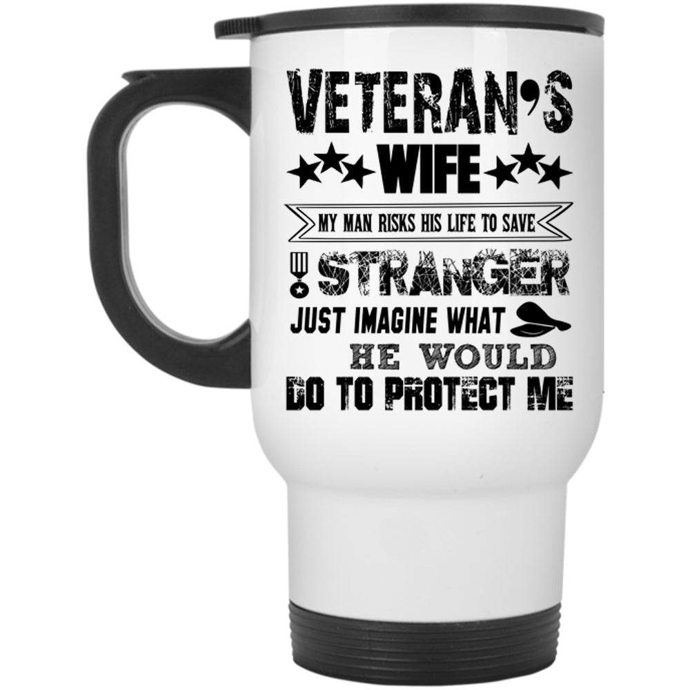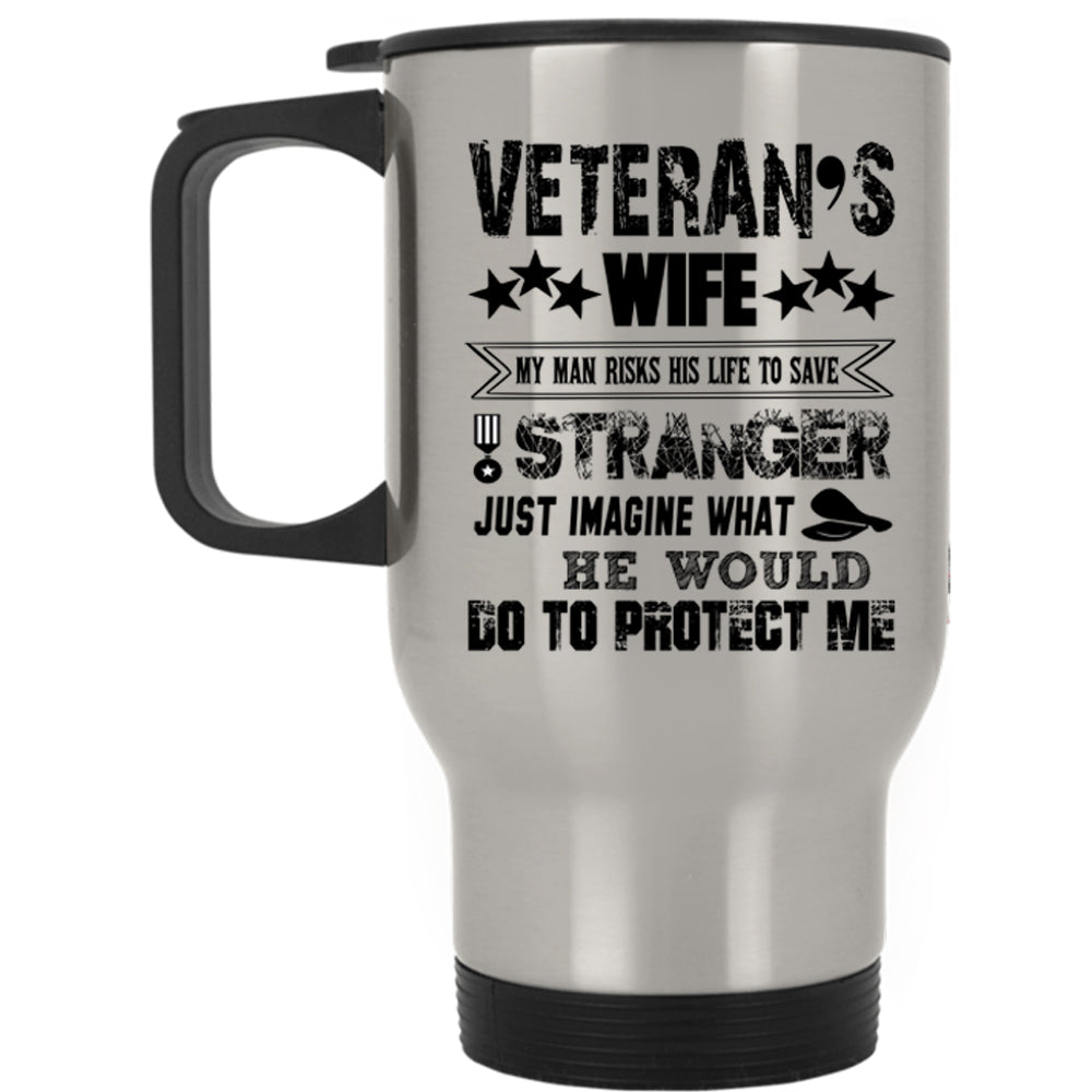He Would Do To Protect Me Travel Mug, Veteran's Wife Mug