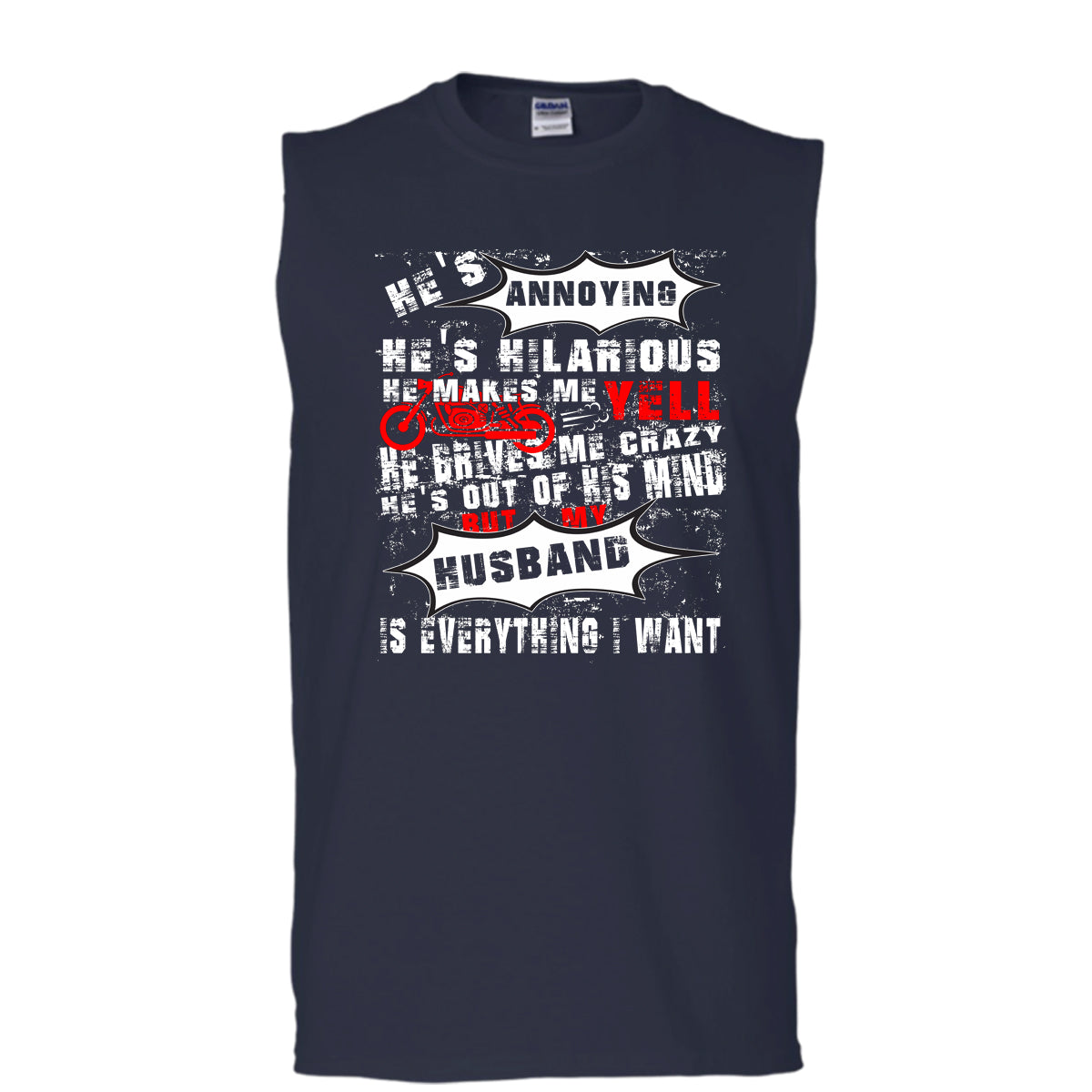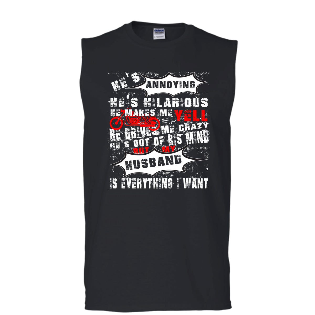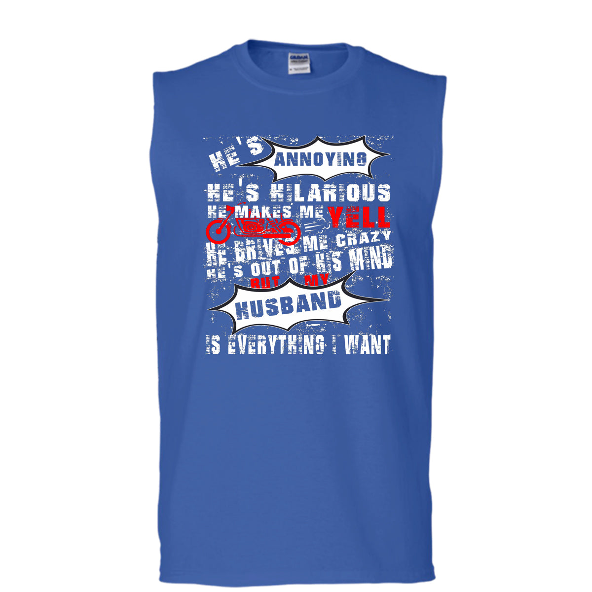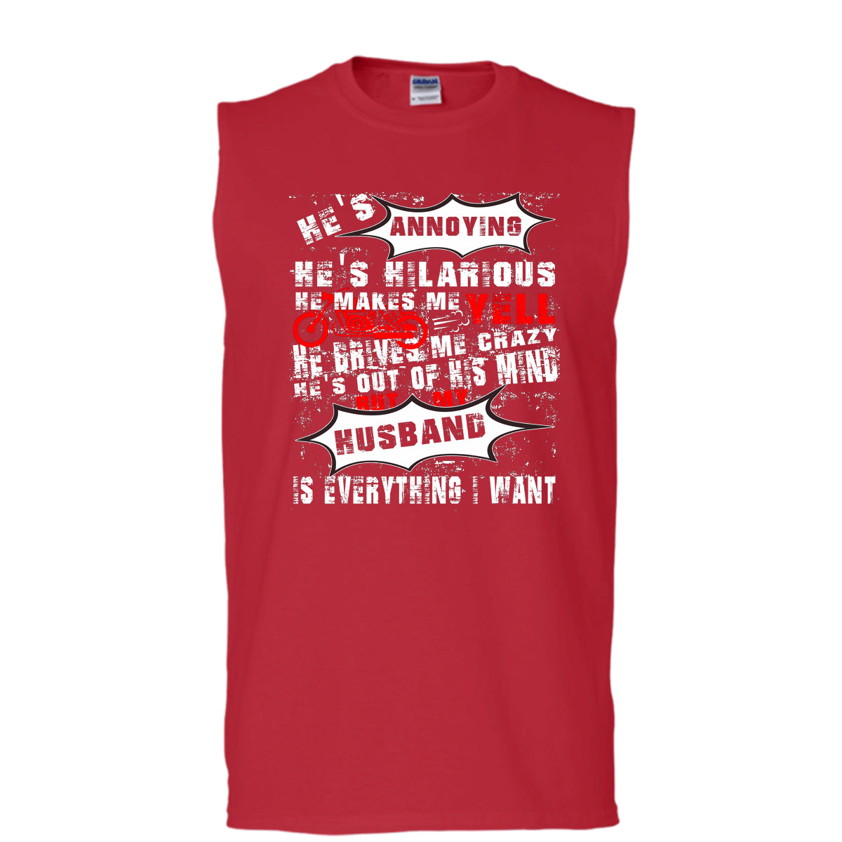 He's Annoying T Shirt, My Husband Is Everything I Want T Shirt, Cool T Shirt (Men's Cotton Sleeveless)