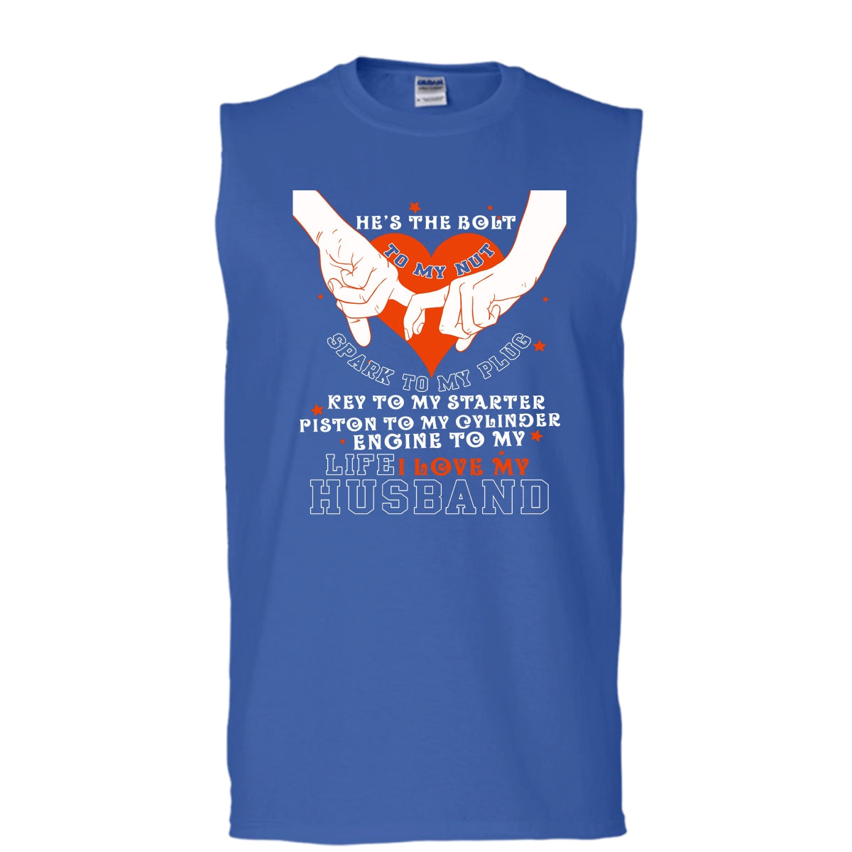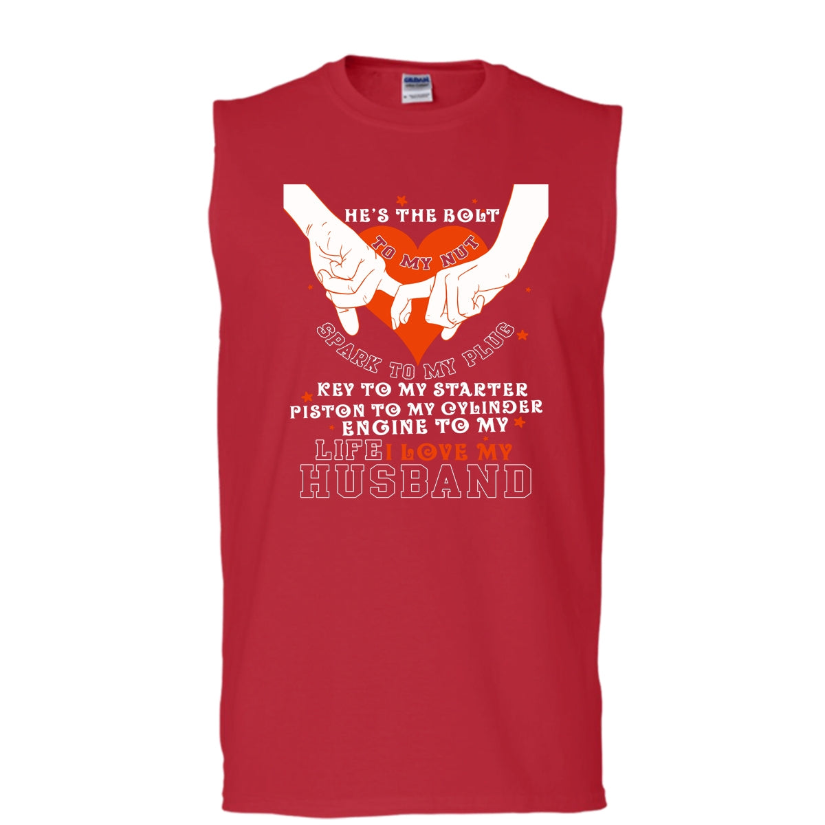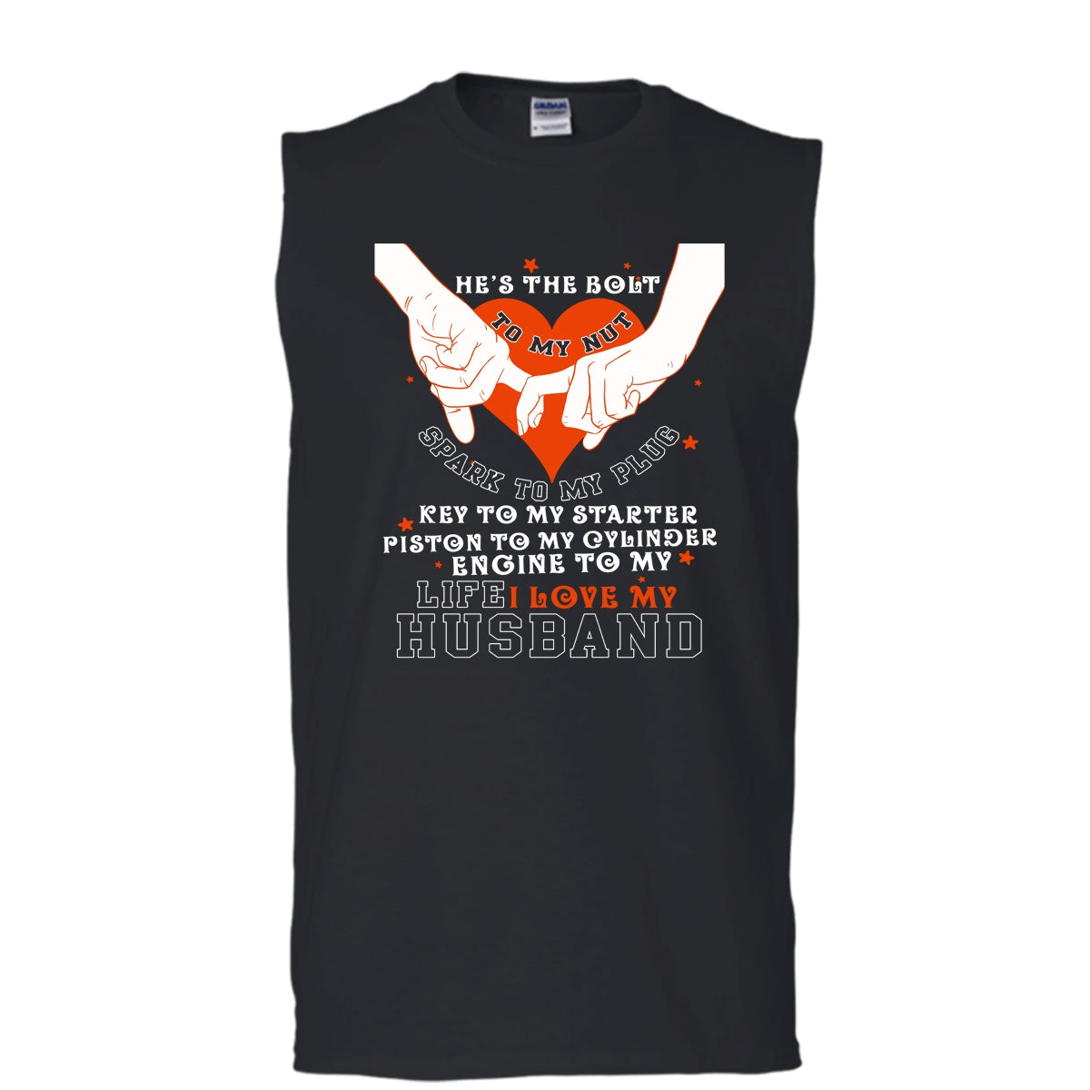 He's The Bolt To My Nut T Shirt, I Love My Husband T Shirt, Cool T Shirt (Men's Cotton Sleeveless)
