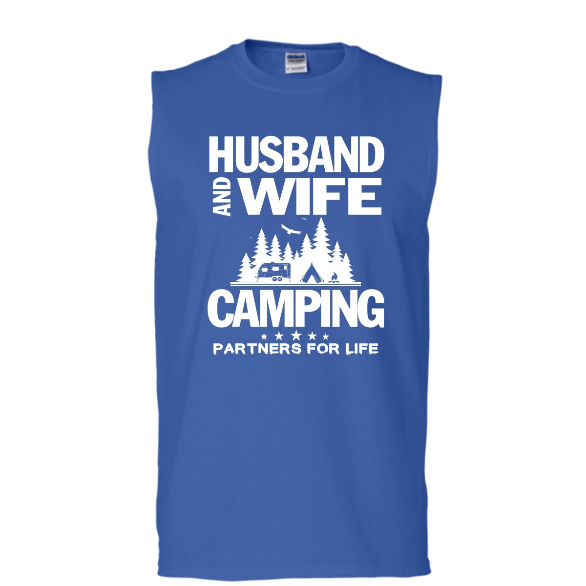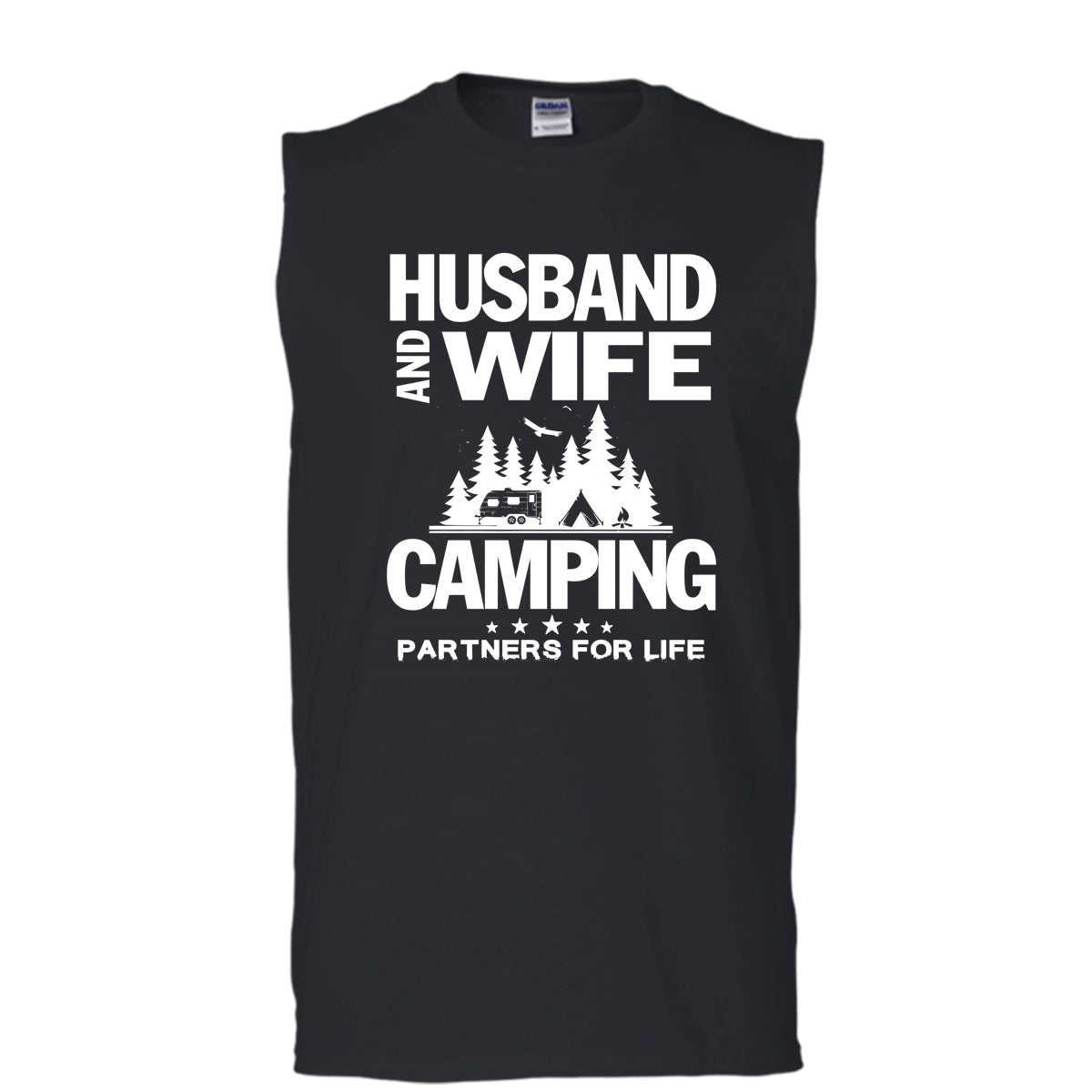 Husband And Wife Camping Partner For Life Shirt, Camper Shirt (Men's Cotton Sleeveless)
