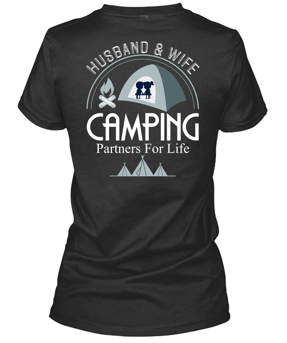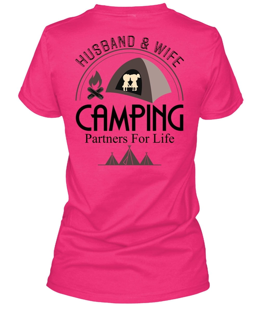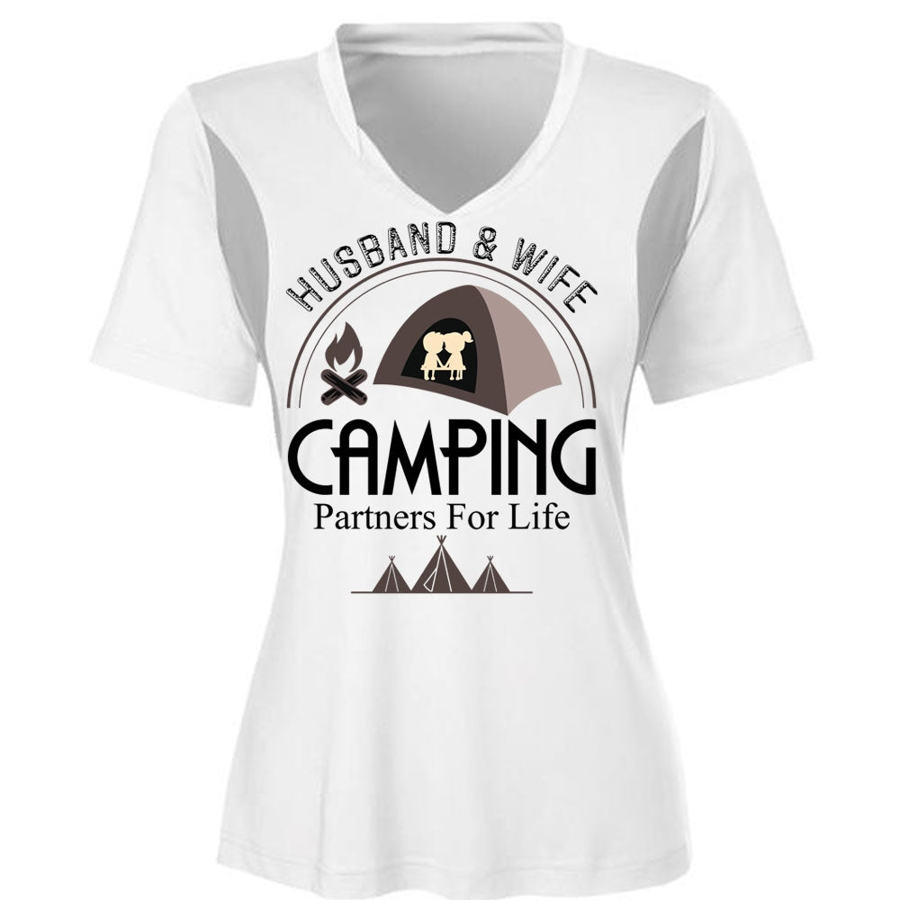 Husband And Wife Camping Partners For Life T Shirt, Being A Camper T Shirt, Cool Shirt (Ladies LS Heather V-Neck)