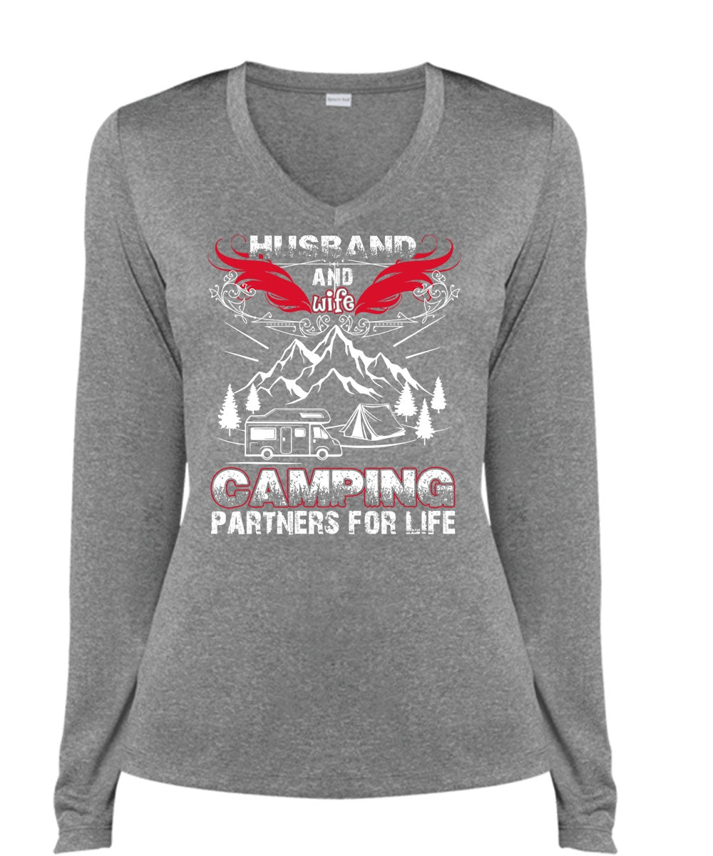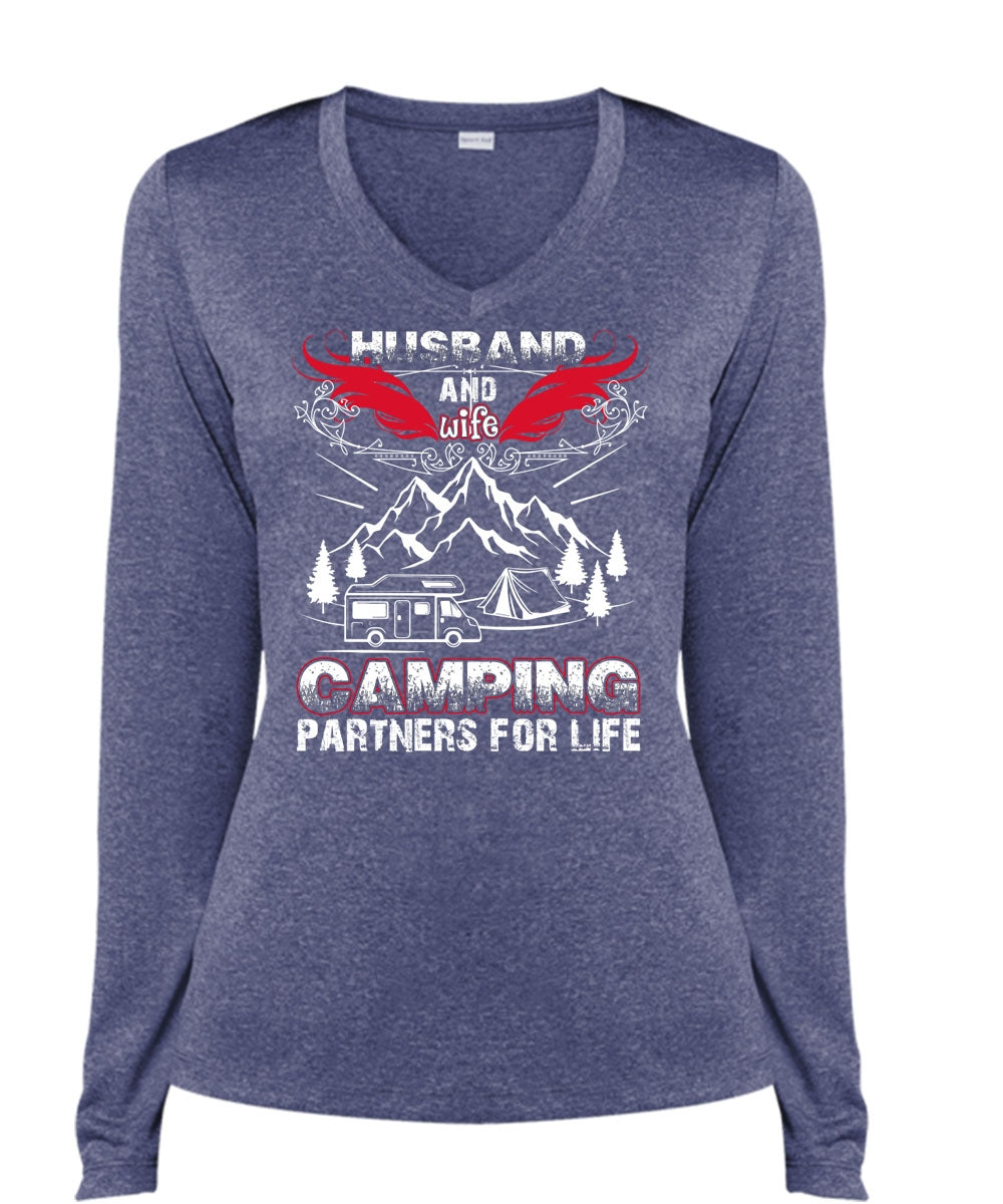 Husband And Wife Camping Partners For Life T Shirt, Being A Husband T Shirt, Cool Shirt (Ladies LS Heather V-Neck)