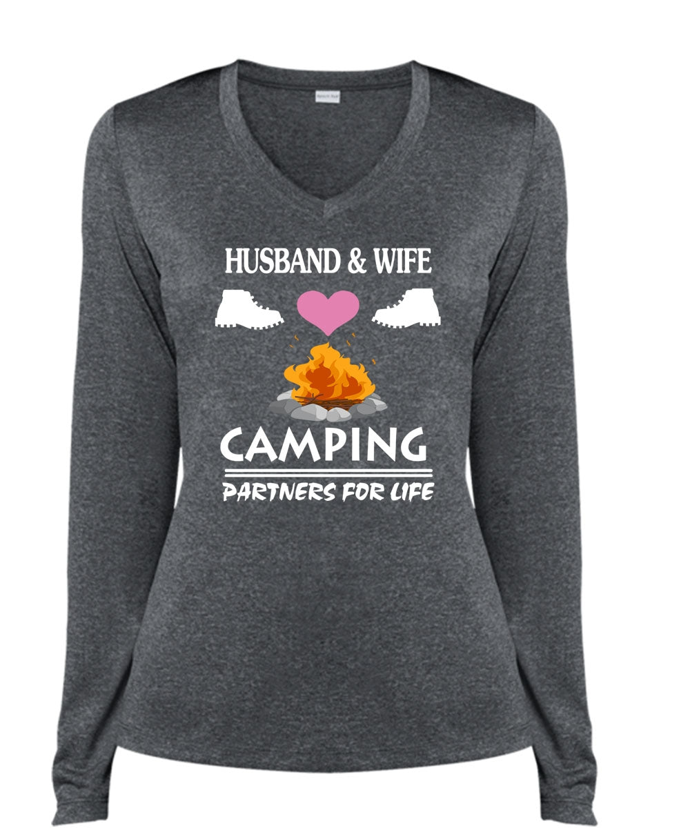 Husband And Wife Camping Partners For Life T Shirt, I Love My Life T Shirt (Ladies LS Heather V-Neck)