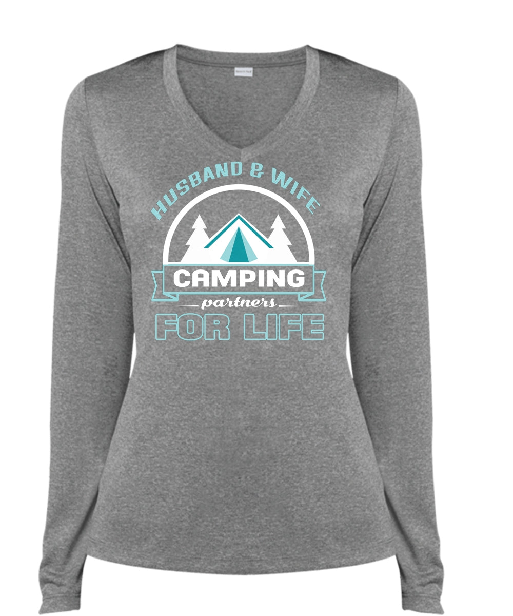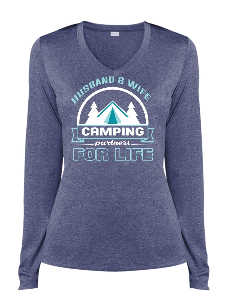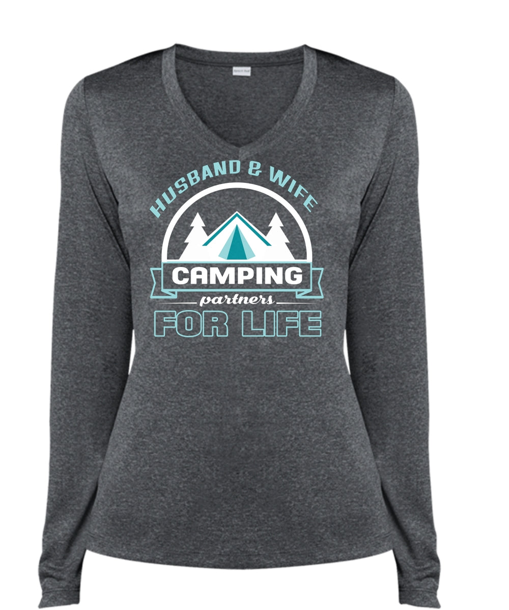 Husband And Wife Camping Partners For Life T Shirt, My Favorite T Shirt (Ladies LS Heather V-Neck)