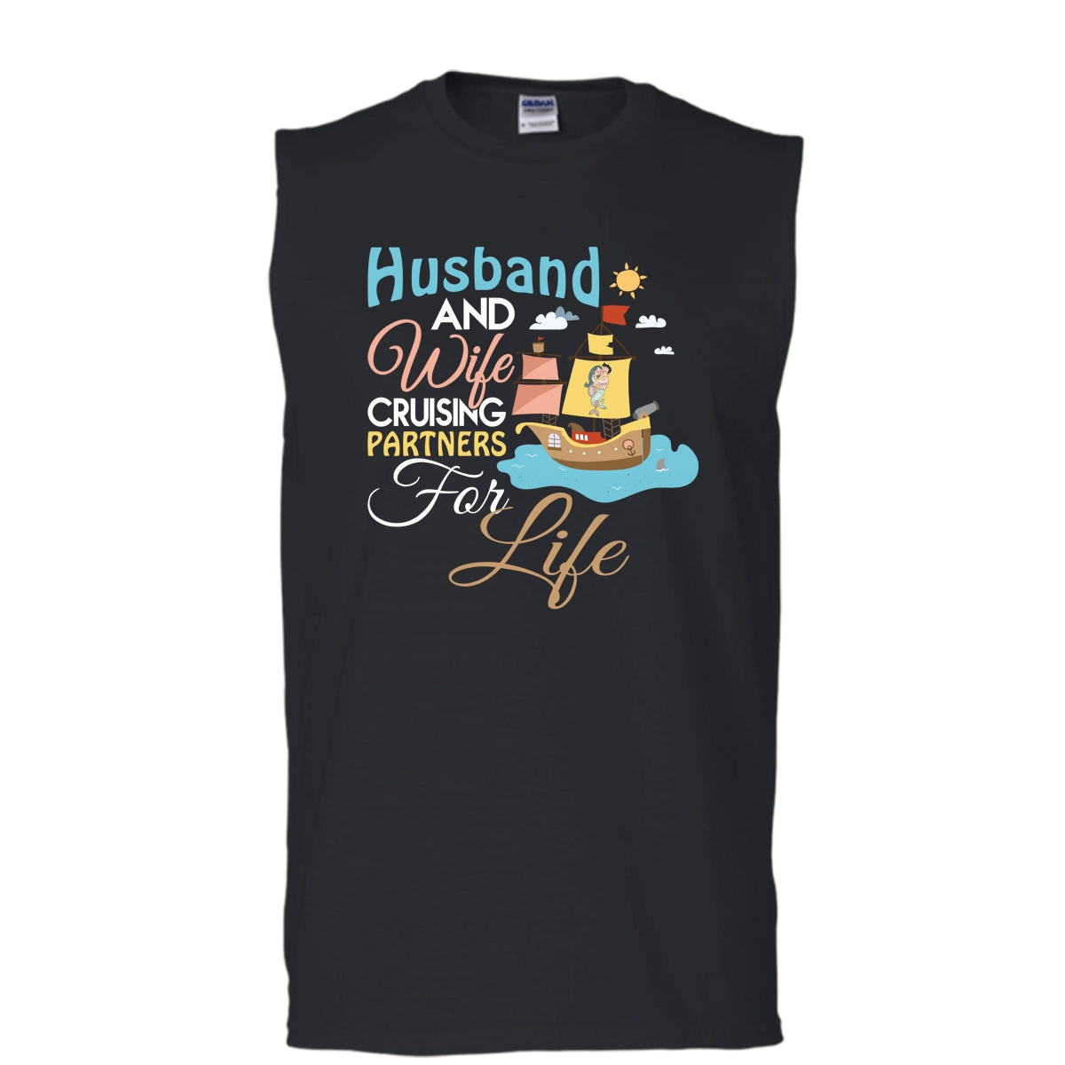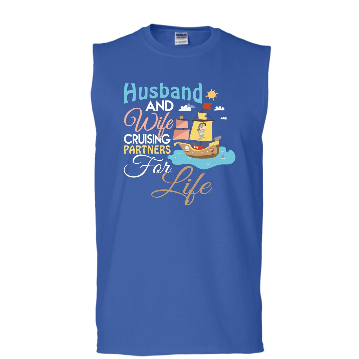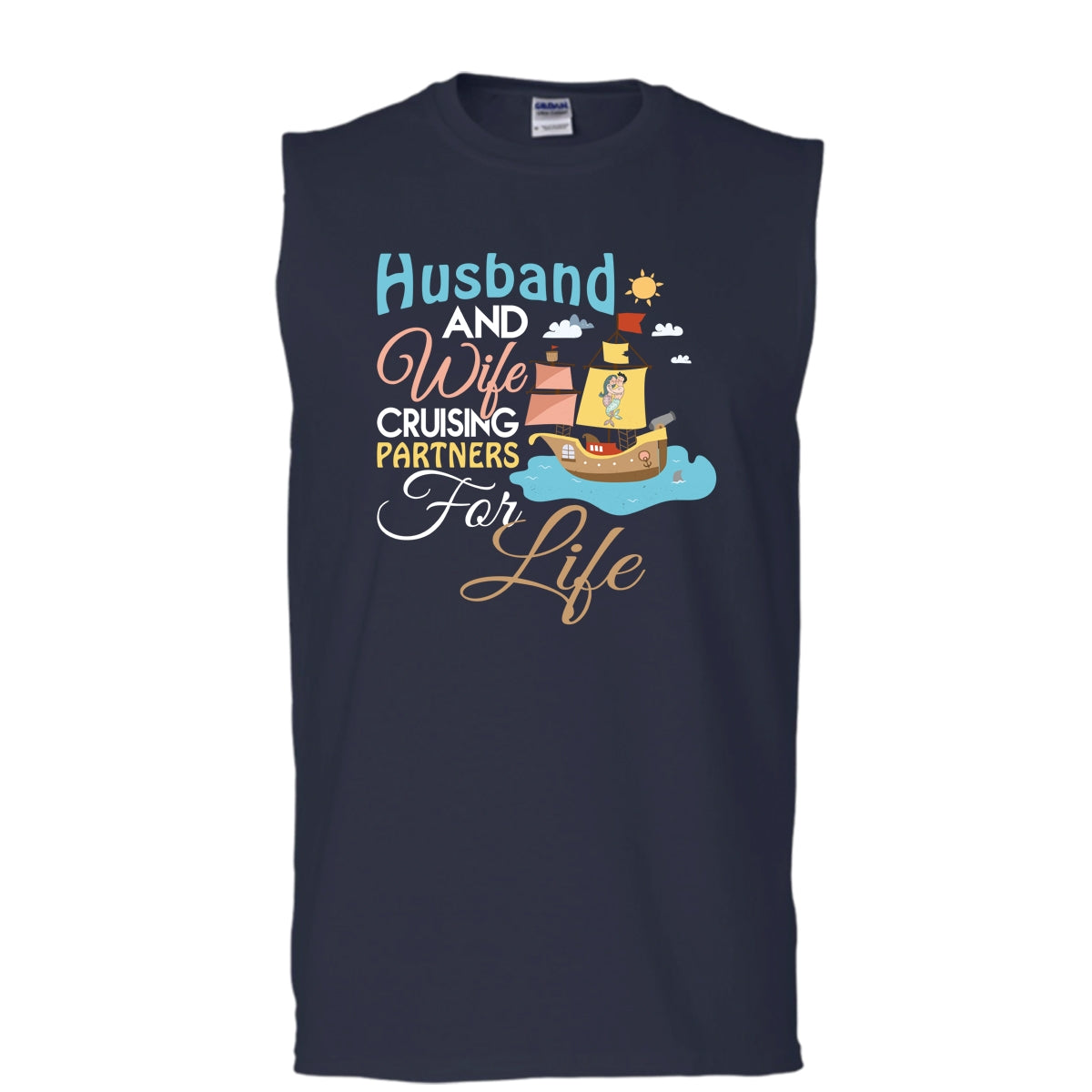 Husband And Wife Cruising Partners For Life Shirt, Cool Cruise Shirt (Men's Cotton Sleeveless)