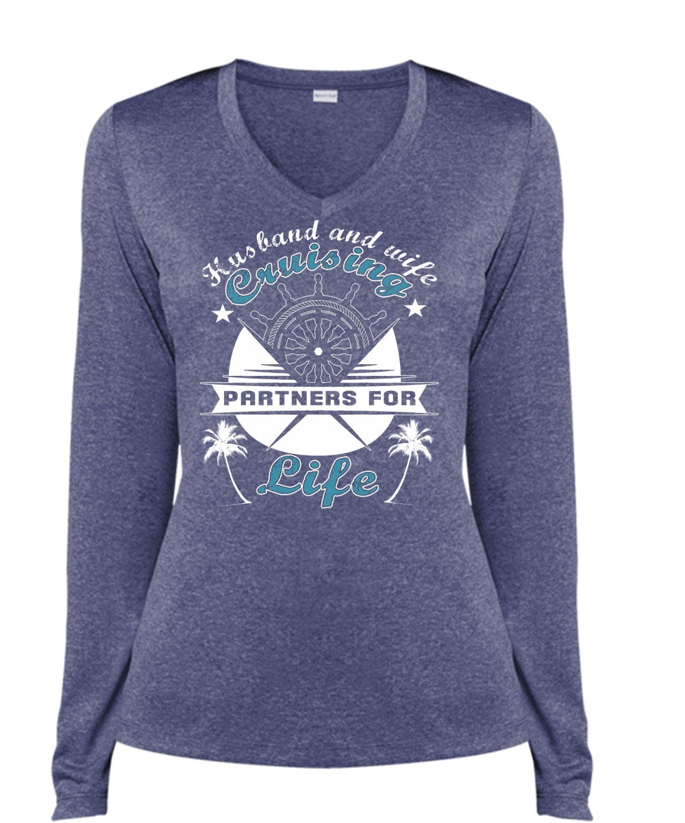 Husband And Wife Cruising Partners For Life T Shirt, My Favorite T Shirt, Cool Shirt (Ladies LS Heather V-Neck)