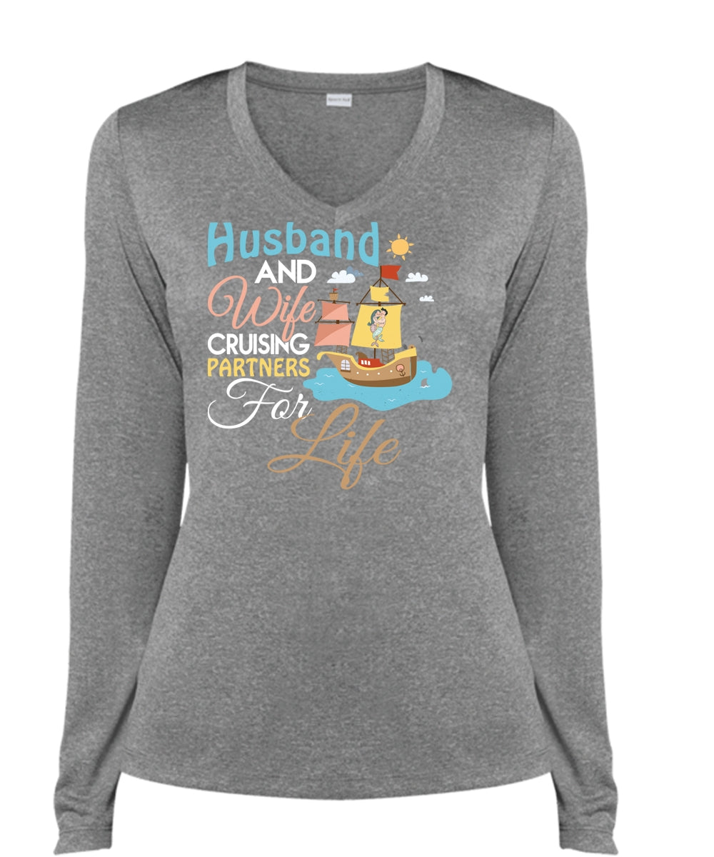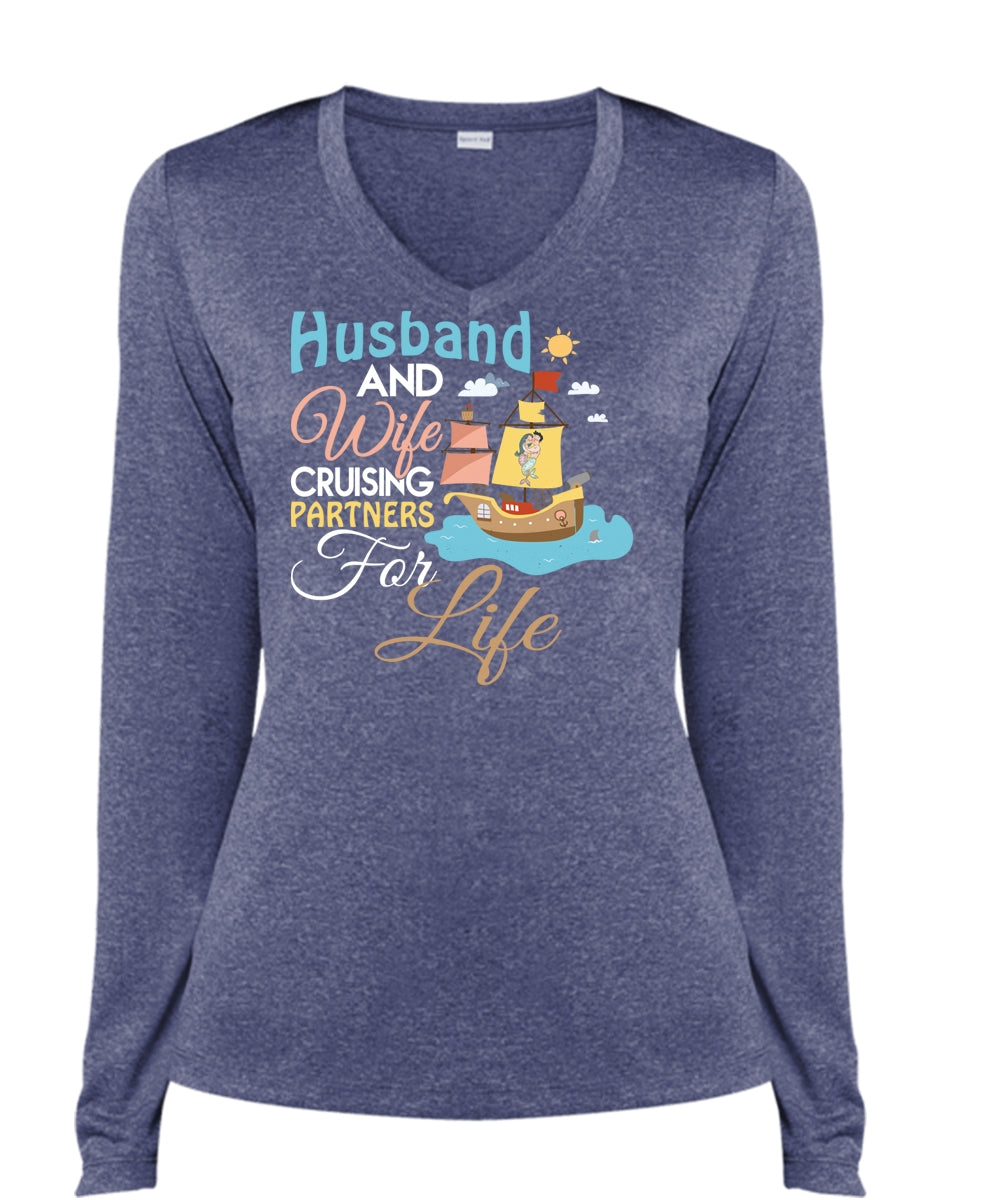 Husband And Wife Cruising Partners For Life T Shirt, Travel T Shirt (Ladies LS Heather V-Neck)