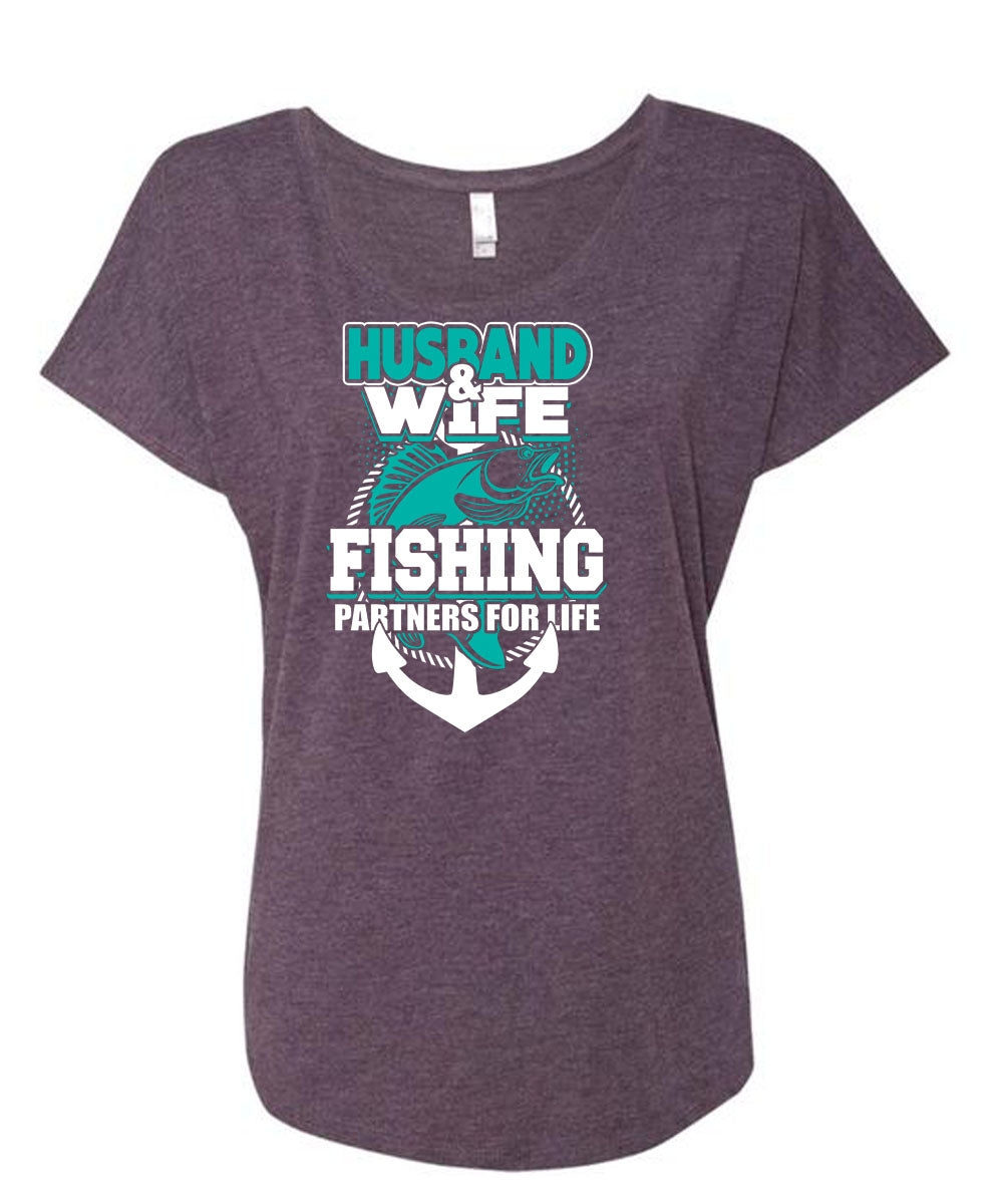 Husband And Wife Fishing Partners For Life T Shirt, Being A Wife T Shirt, Cool Shirt (Ladies' Triblend Dolman Sleeve)