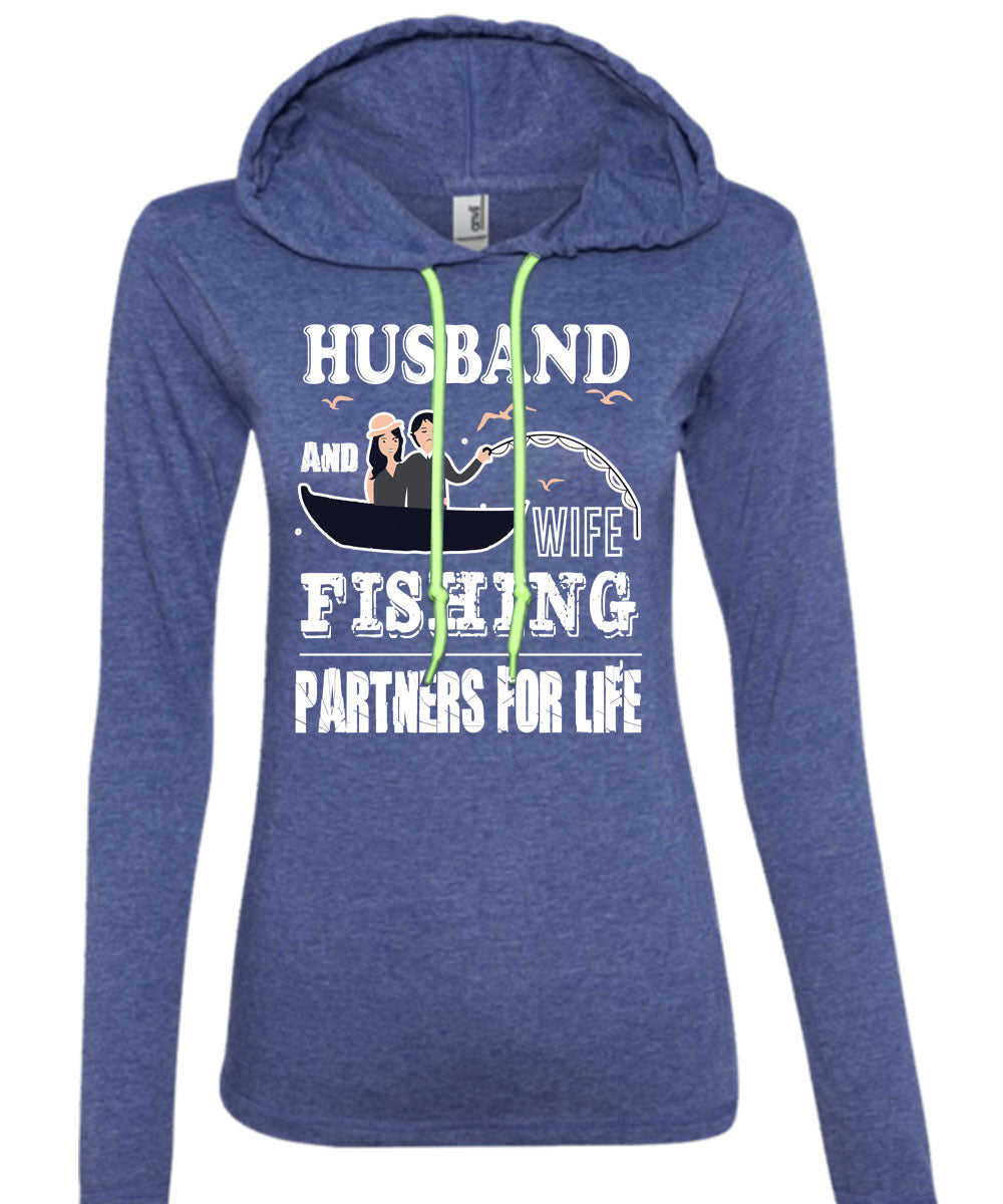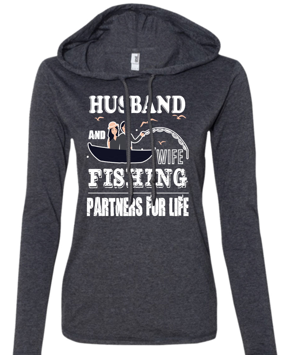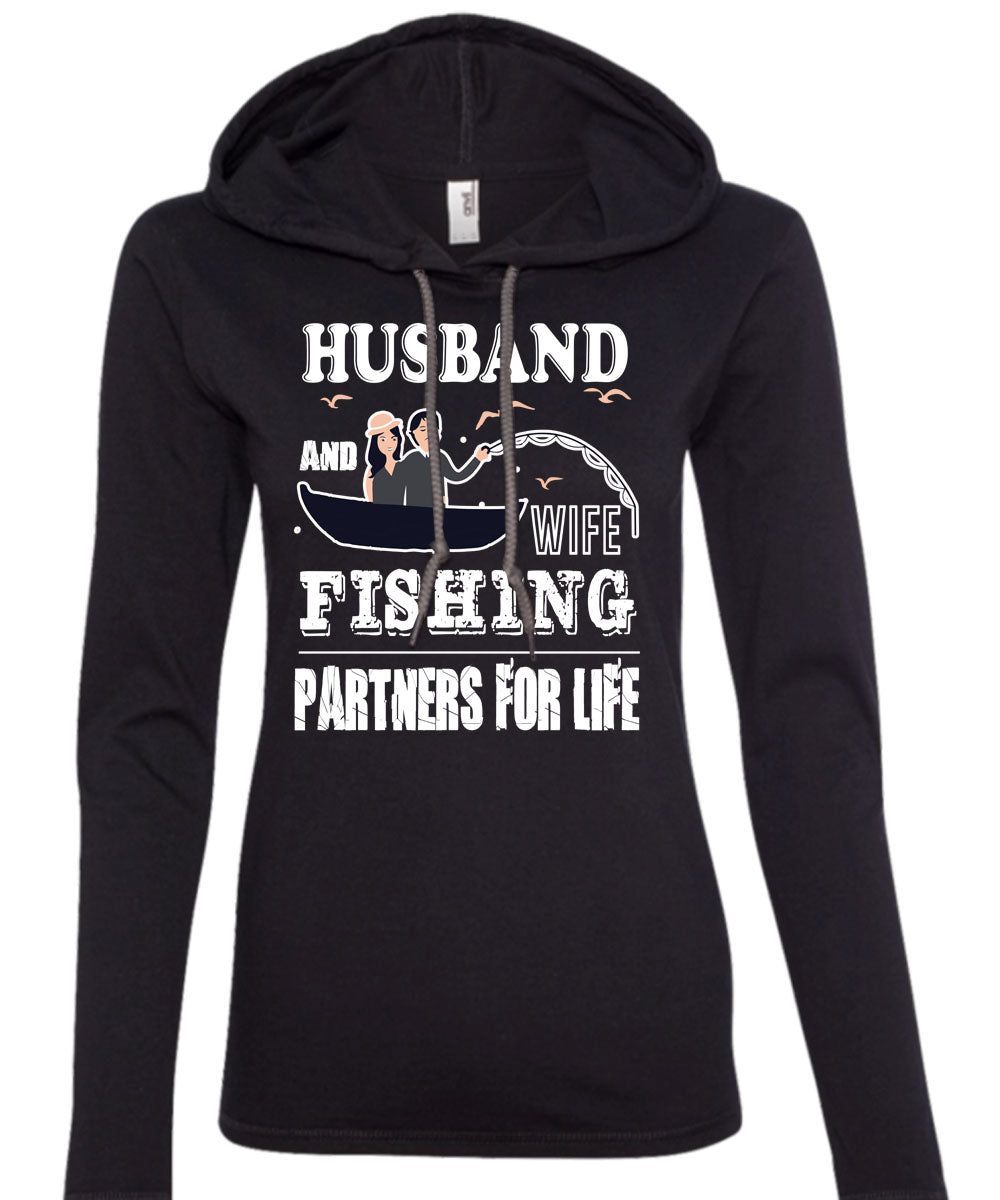 Husband And Wife Fishing Partners For Life T Shirt, I Love Fisherman T Shirt (Anvil Ladies Ringspun Hooded)