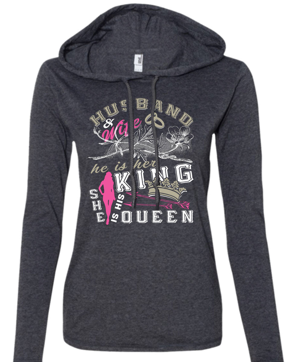 Husband And Wife He Is Her King T Shirt, She Is His Queen T Shirt (Anvil Ladies Ringspun Hooded)