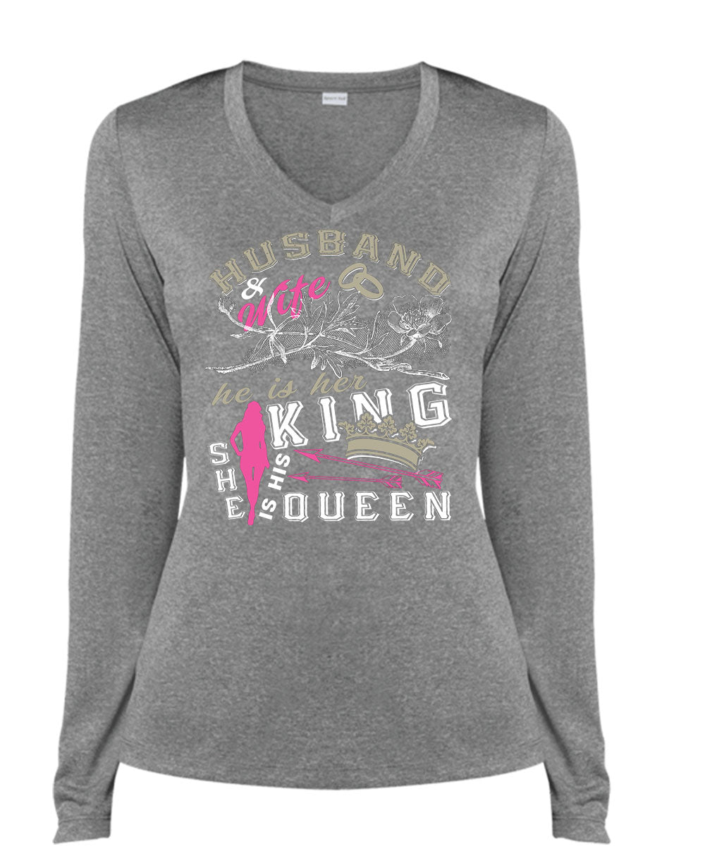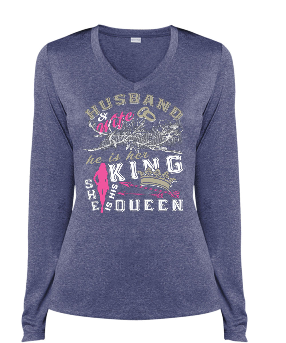 Husband And Wife He Is Her King T Shirt, She Is His Queen T Shirt, Cool Shirt (Ladies LS Heather V-Neck)