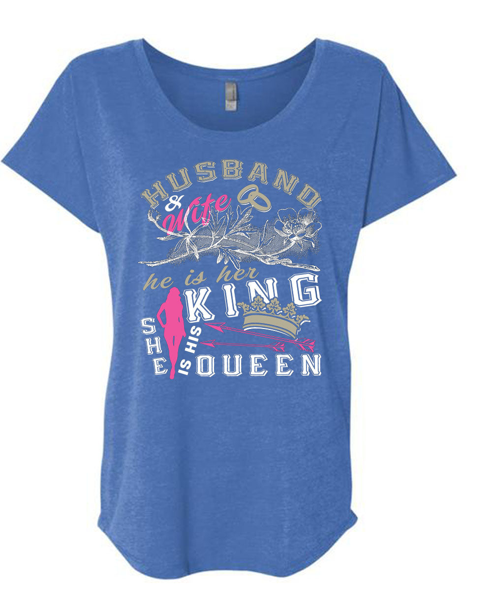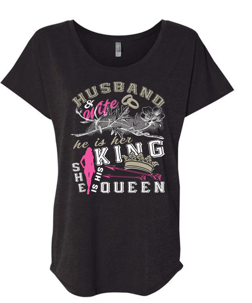 Husband And Wife He Is Her King T Shirt, She Is His Queen T Shirt, Cool Shirt (Ladies' Triblend Dolman Sleeve)