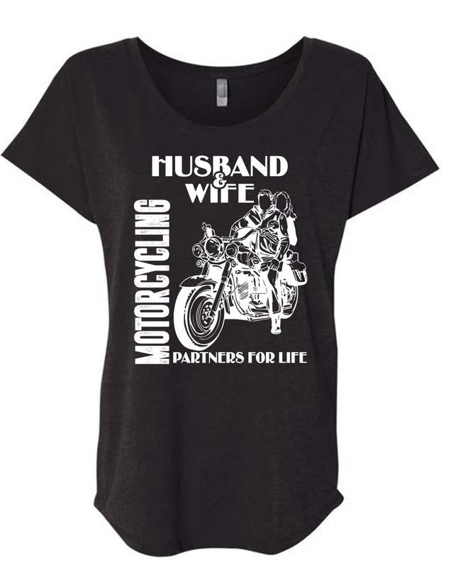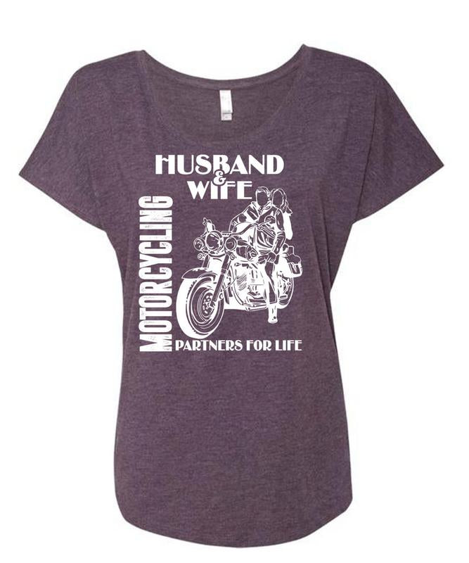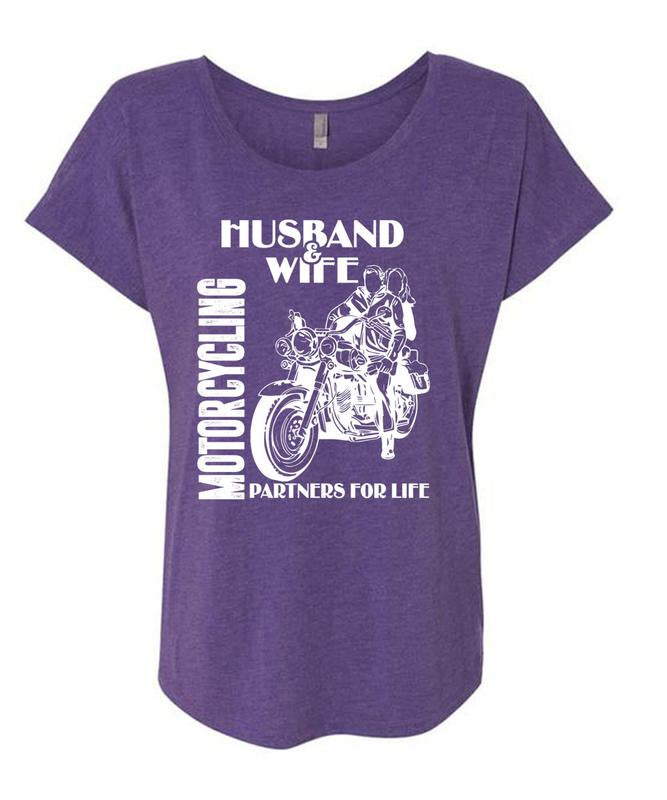 Husband And Wife Motorcycling Partners For Life T Shirt, Being A Biker T Shirt, Cool Shirt (Ladies' Triblend Dolman Sleeve)