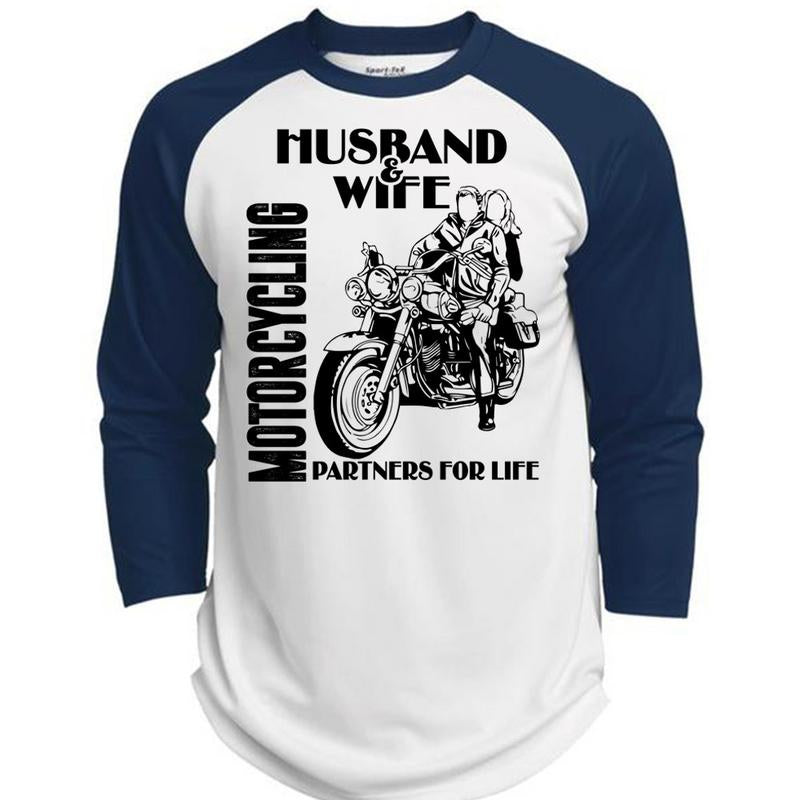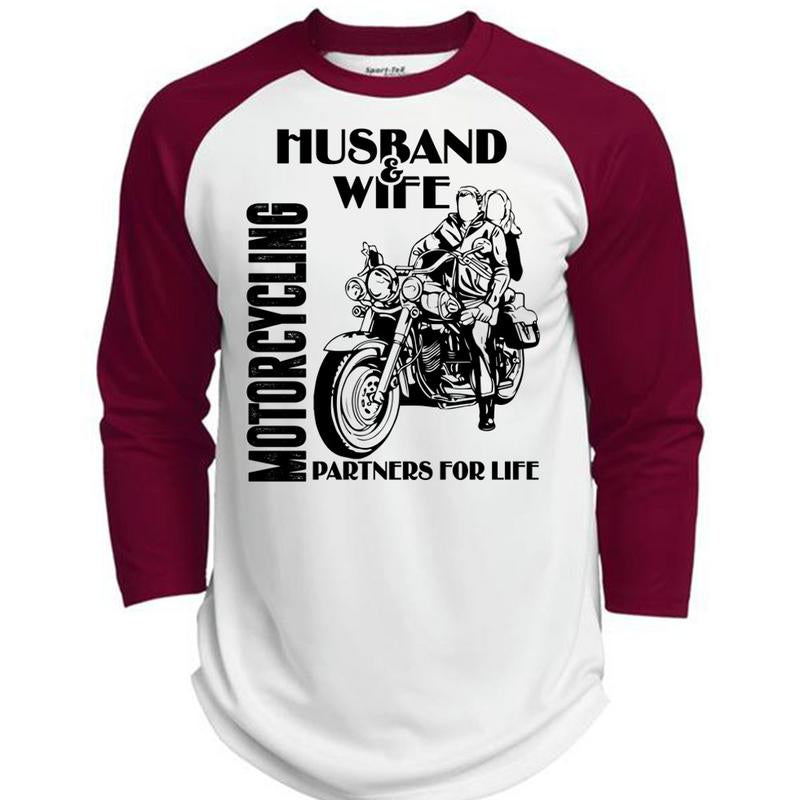 Husband And Wife Motorcycling Partners For Life T Shirt, I Love Biking T Shirt, Awesome T-Shirts (Polyester Game Baseball Jersey)