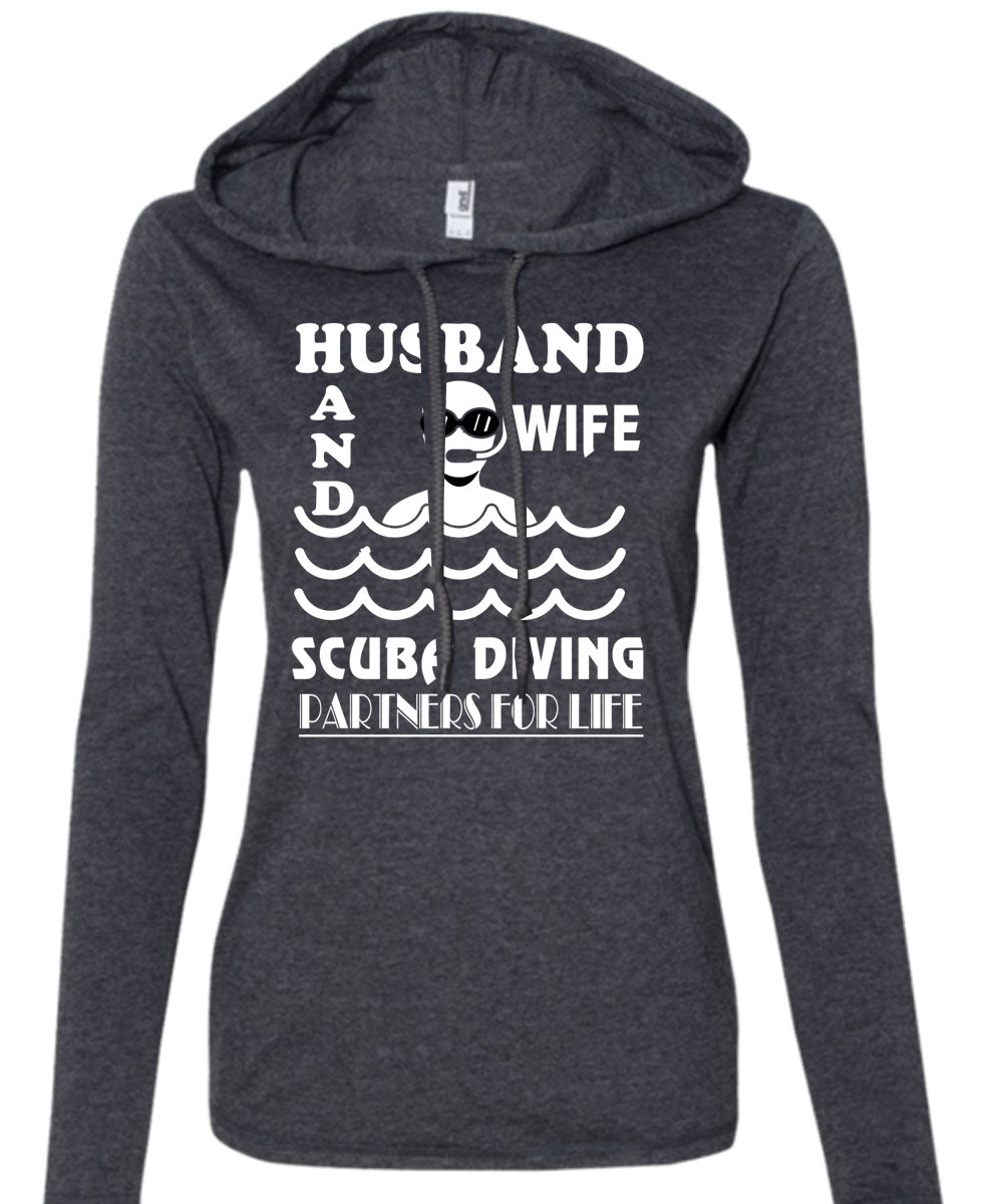 Husband And Wife Scuba Diving Partners For Life T Shirt, I Love Husband T Shirt (Anvil Ladies Ringspun Hooded)