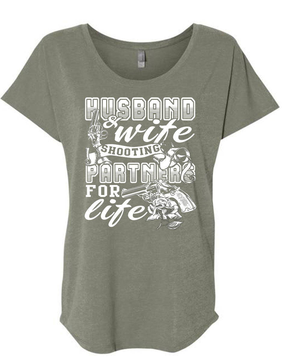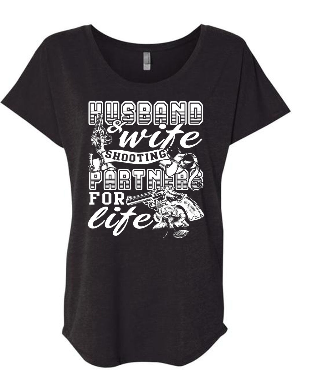 Husband And Wife Shooting Partners For Life T Shirt, Being A Hunter T Shirt, Cool Shirt (Ladies' Triblend Dolman Sleeve)
