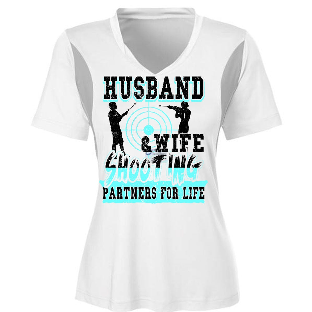 Husband And Wife Shooting Partners For Life T Shirt, Being A Shooting T Shirt, Cool Shirt (Ladies LS Heather V-Neck)
