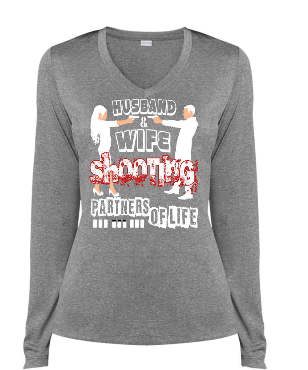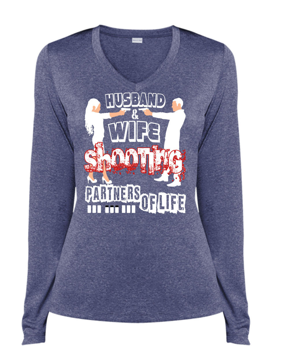 Husband And Wife Shooting Partners For Life T Shirt, I Love Gunner T Shirt, Cool Shirt (Ladies LS Heather V-Neck)
