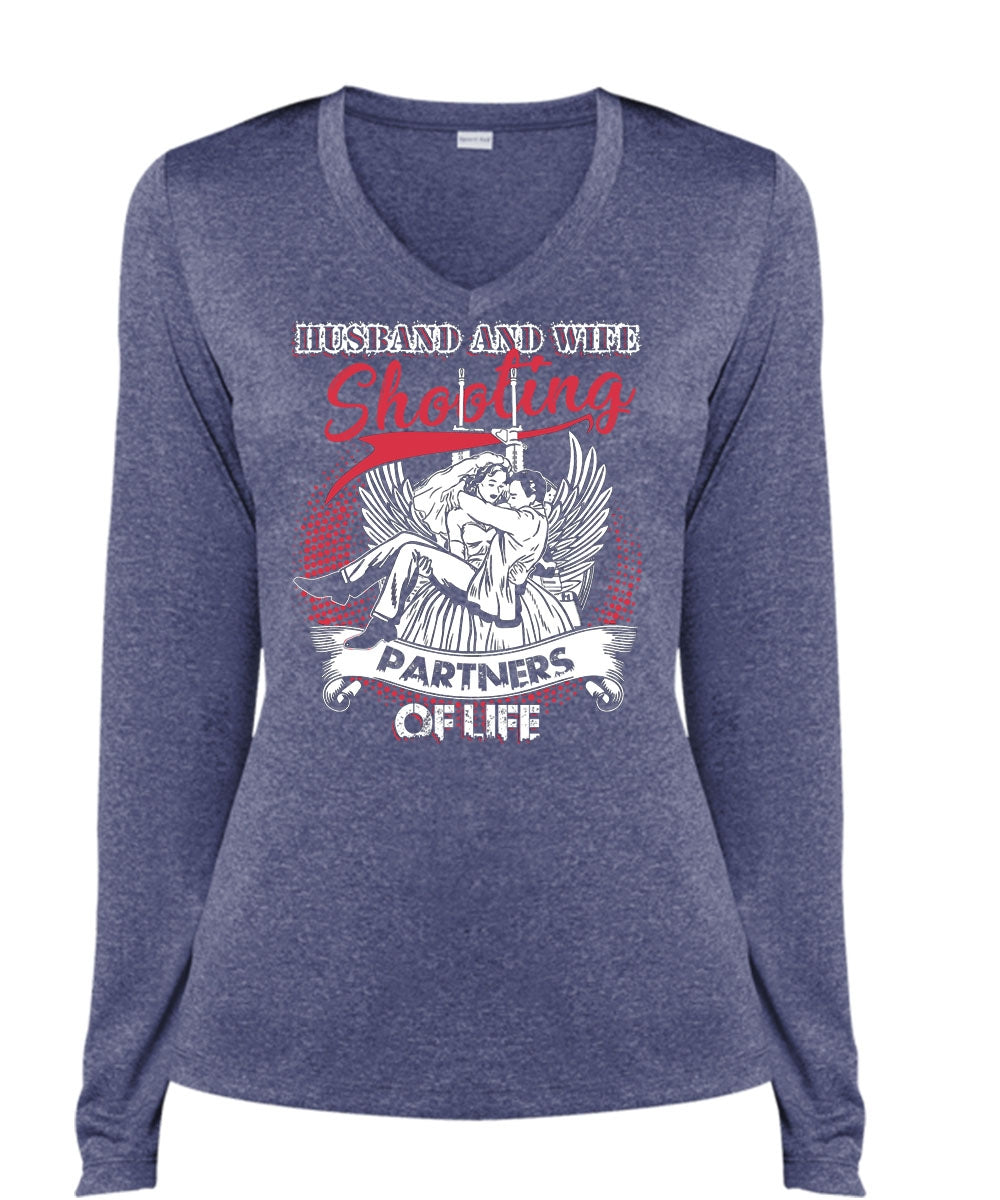 Husband And Wife Shooting Partners Of Life T Shirt, Being A Husband T Shirt, Cool Shirt (Ladies LS Heather V-Neck)