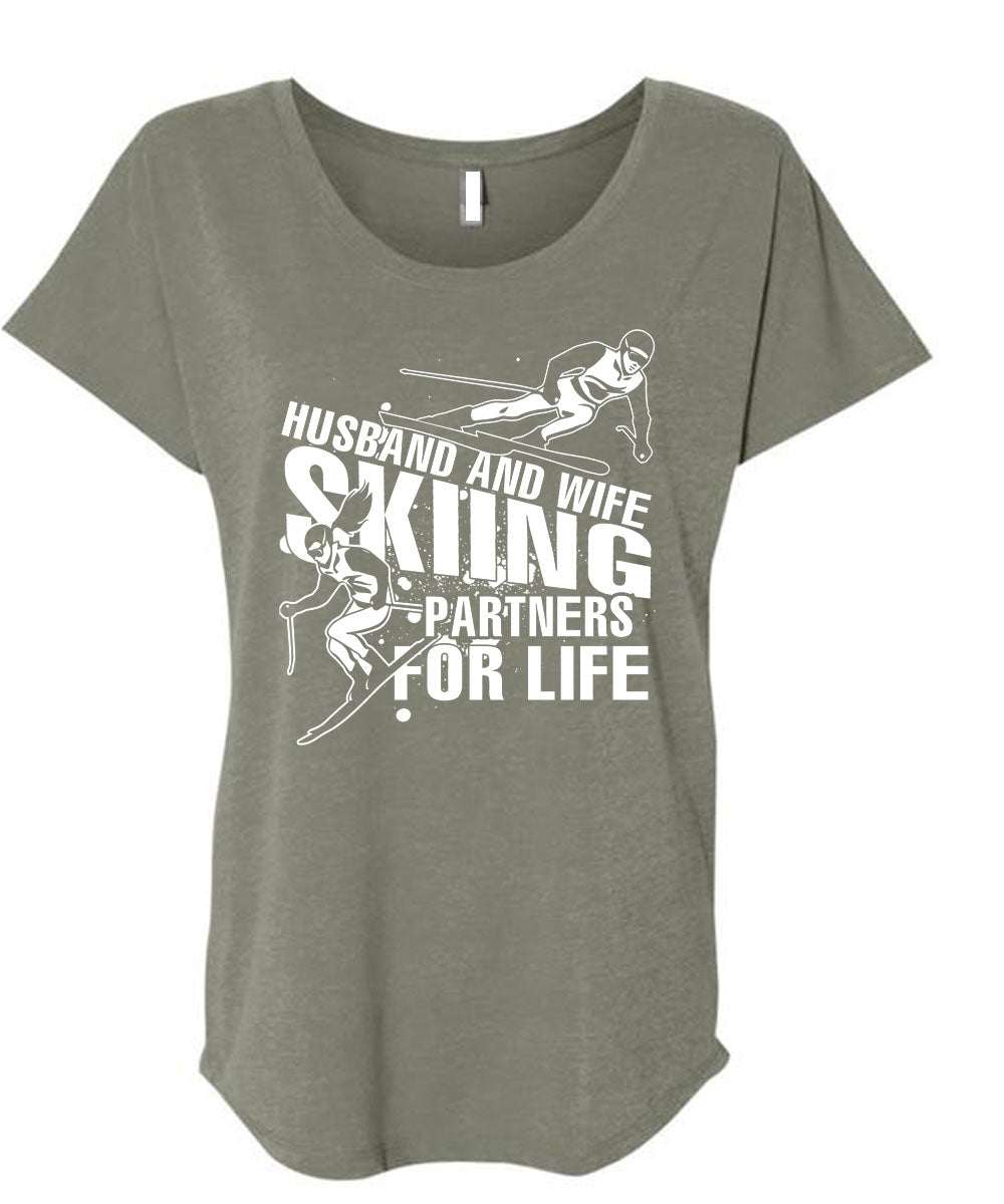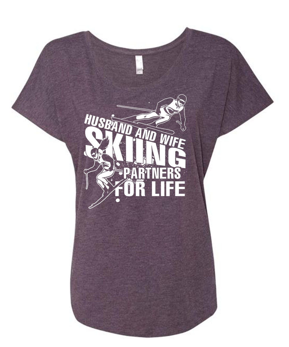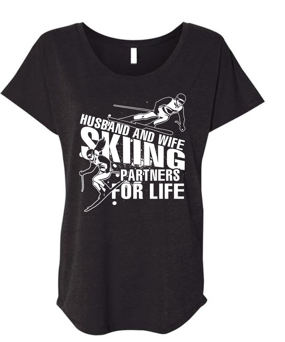 Husband And Wife Skiing Partners For Life T Shirt, Being A Skiing T Shirt, Cool Shirt (Ladies' Triblend Dolman Sleeve)