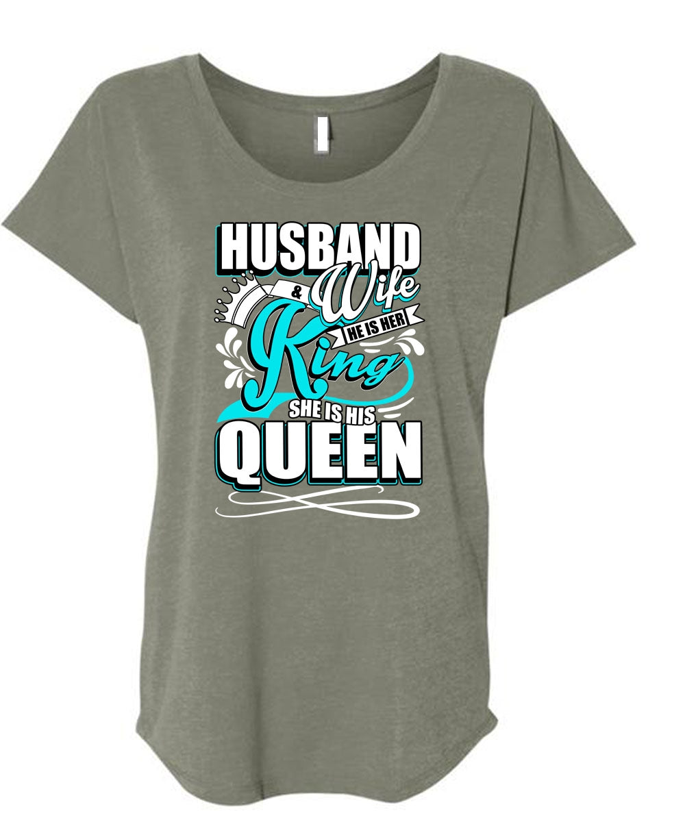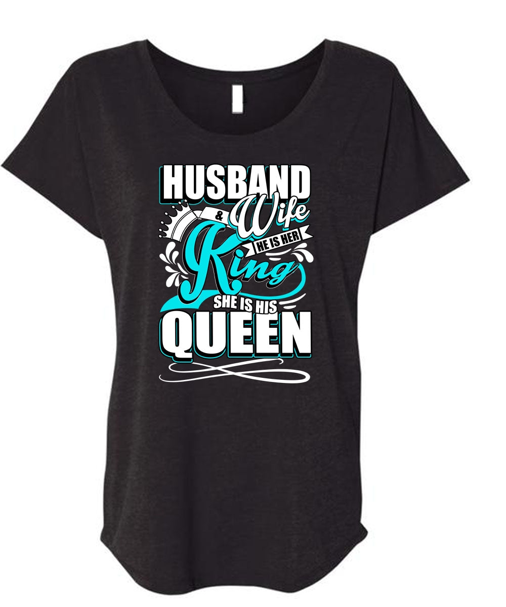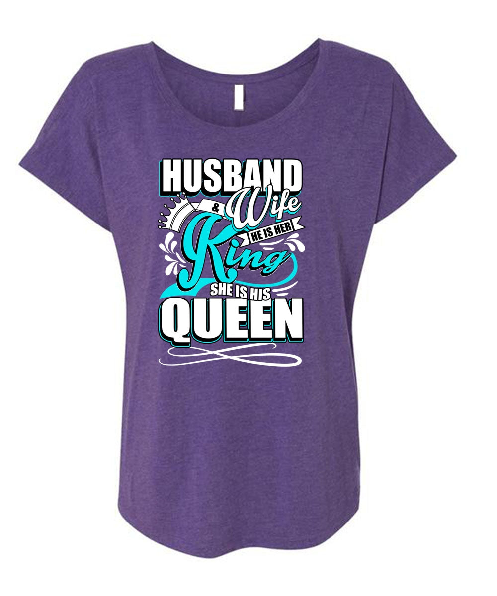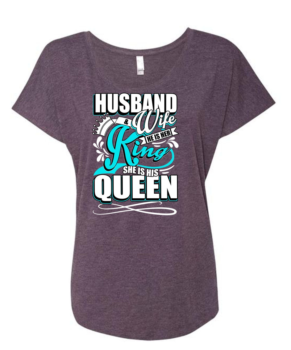 Husband And Wife T Shirt, He Is Her King T Shirt, Cool Shirt (Ladies' Triblend Dolman Sleeve)