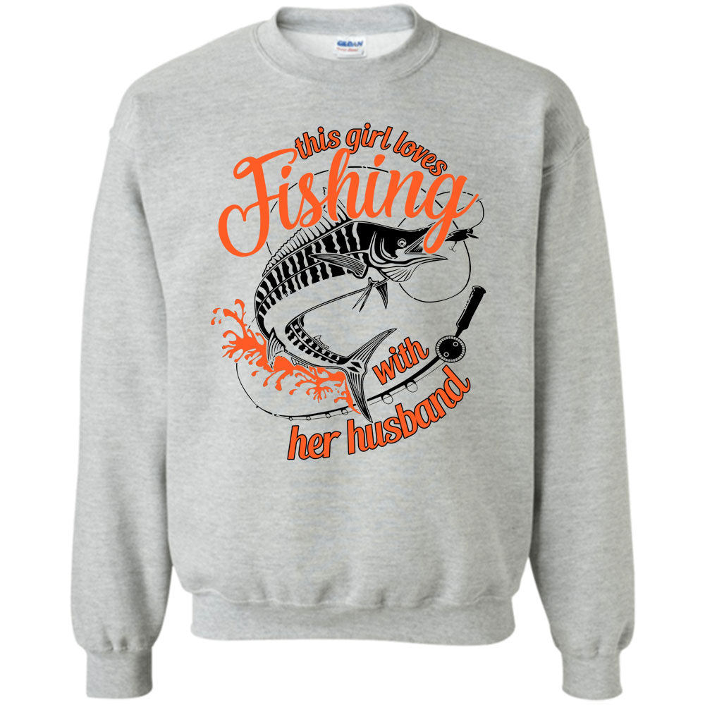 Husband And Wife T Shirt, This Girl Loves Fishing With Her Husband Sweatshirt