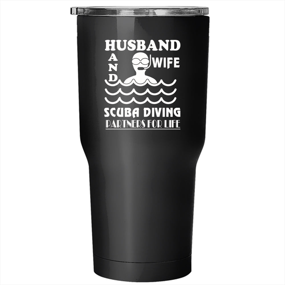 Husband And Wife Tumbler 30 oz Stainless Steel, Scuba Diving Partners For Life Travel Mug