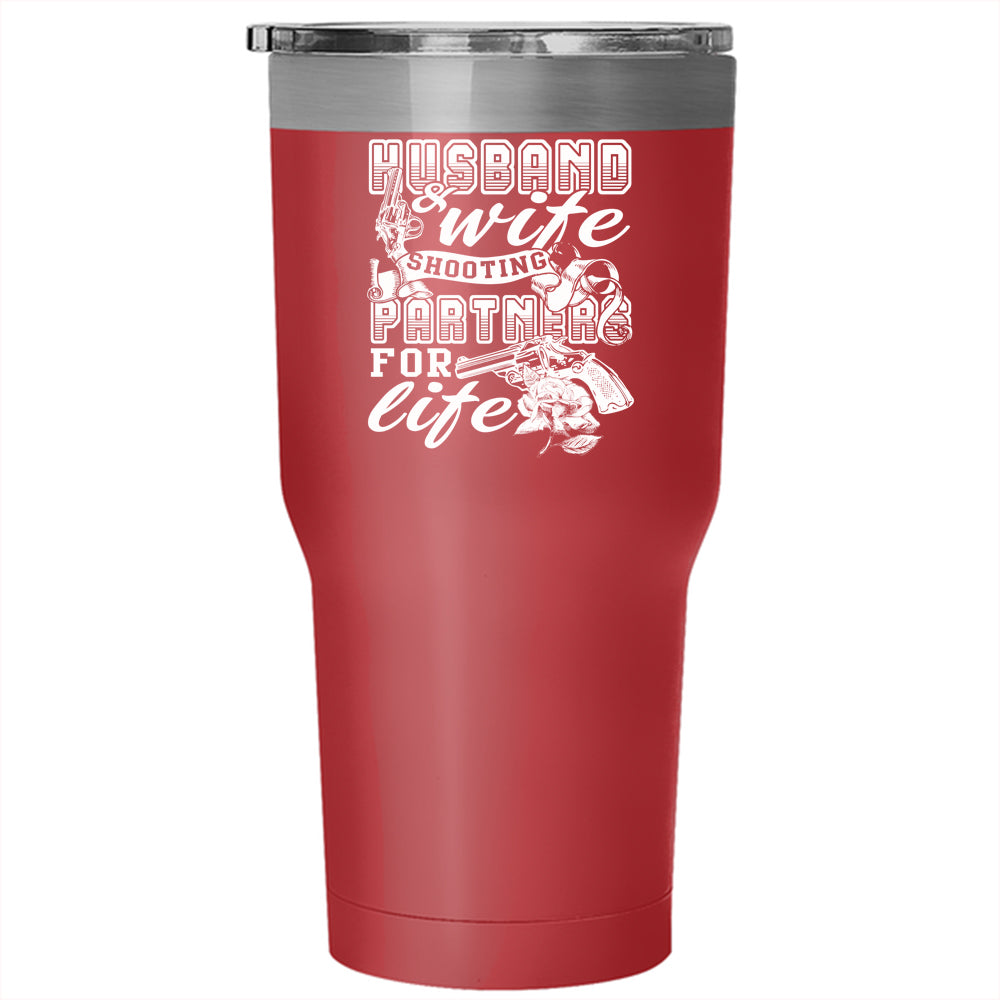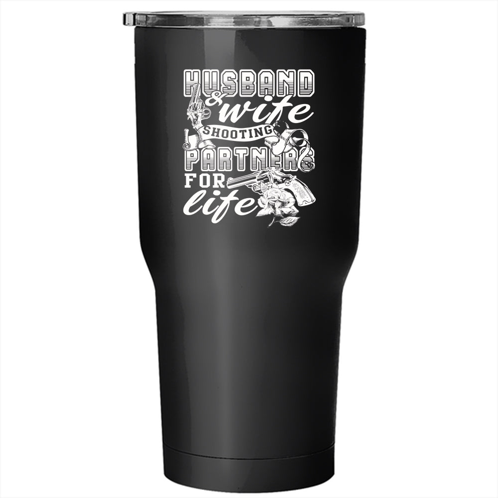 Husband And Wife Tumbler 30 oz Stainless Steel, Shooting Partners For Life Travel Mug