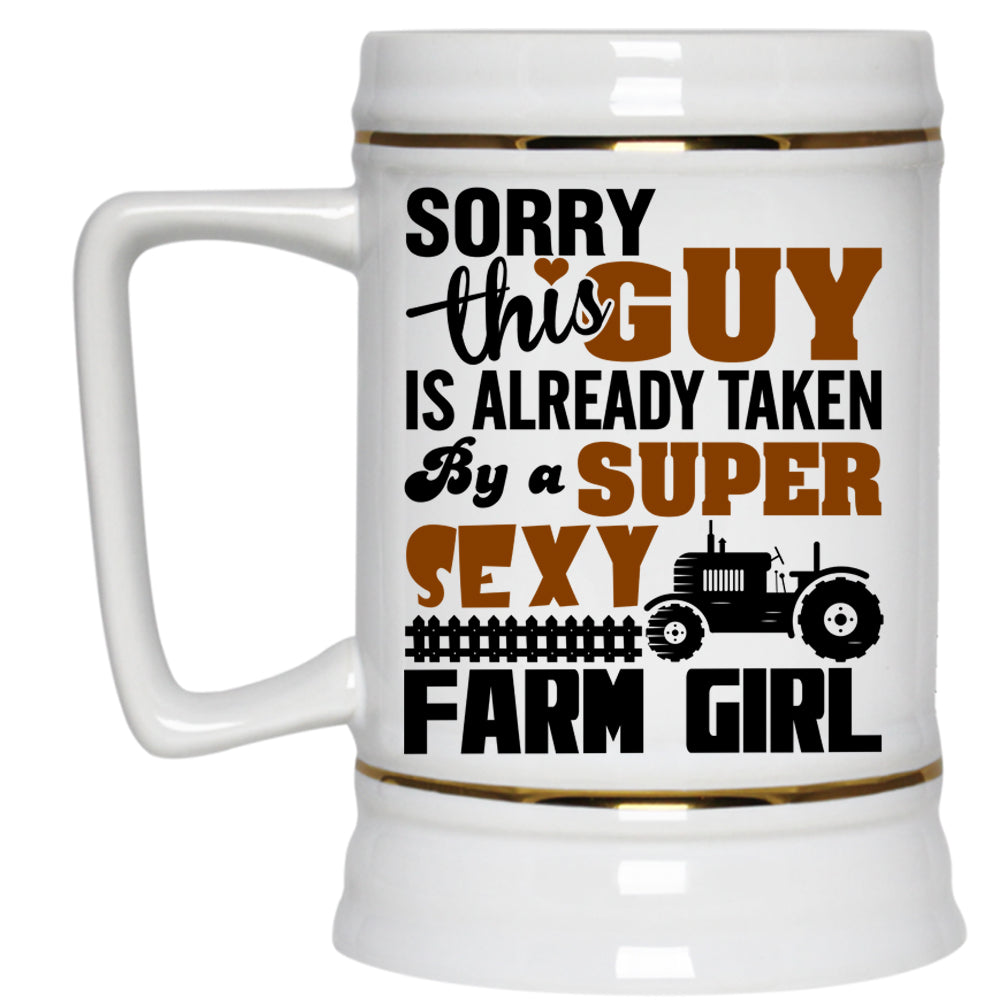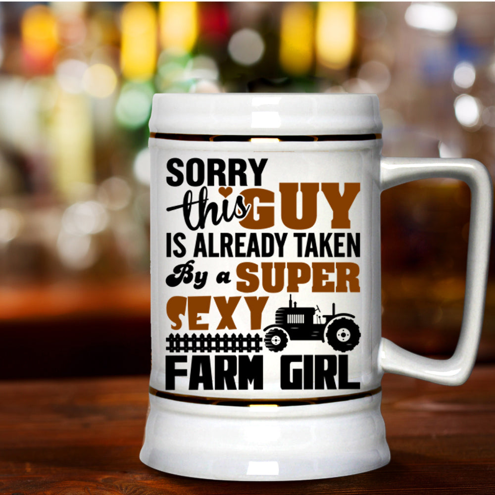 Husband Beer Stein 22oz, This Guy Is Already Taken By A Farm Girl Beer Mug