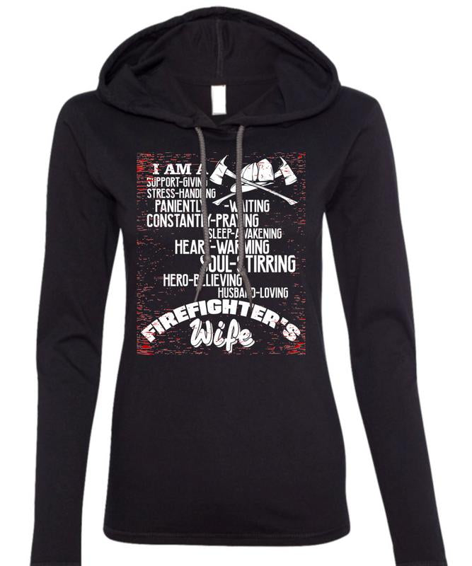 Husband Loving Firefighter's Wife T Shirt, Being A Firefighter T Shirt (Anvil Ladies Ringspun Hooded)