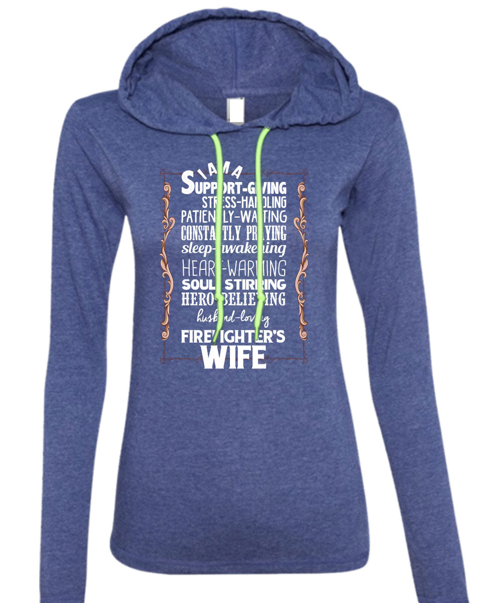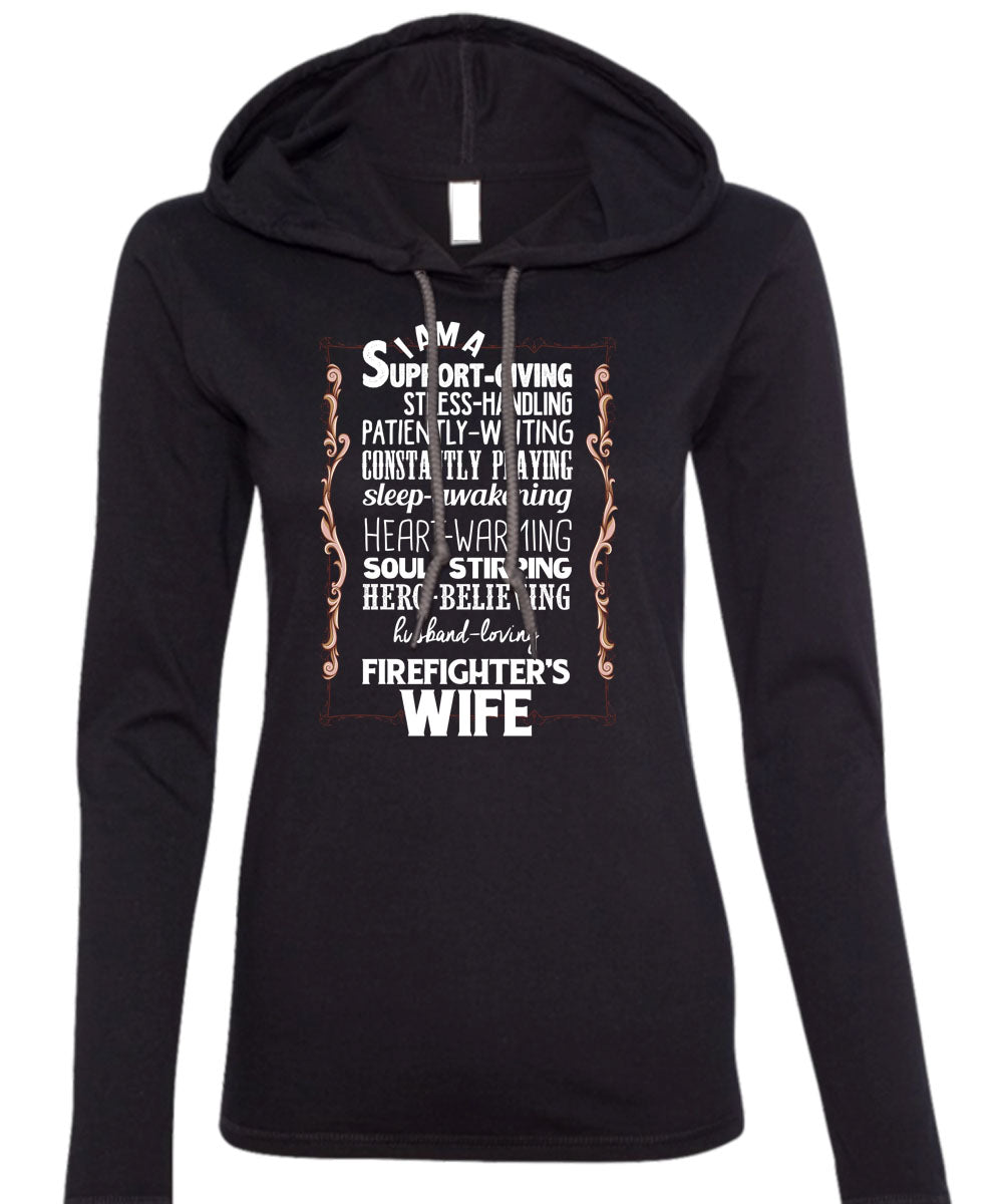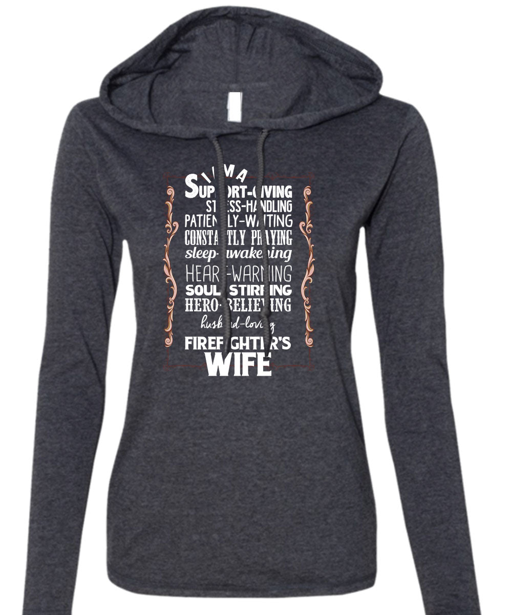 Husband Loving Firefighter's Wife T Shirt, I Love Firefighter T Shirt (Anvil Ladies Ringspun Hooded)
