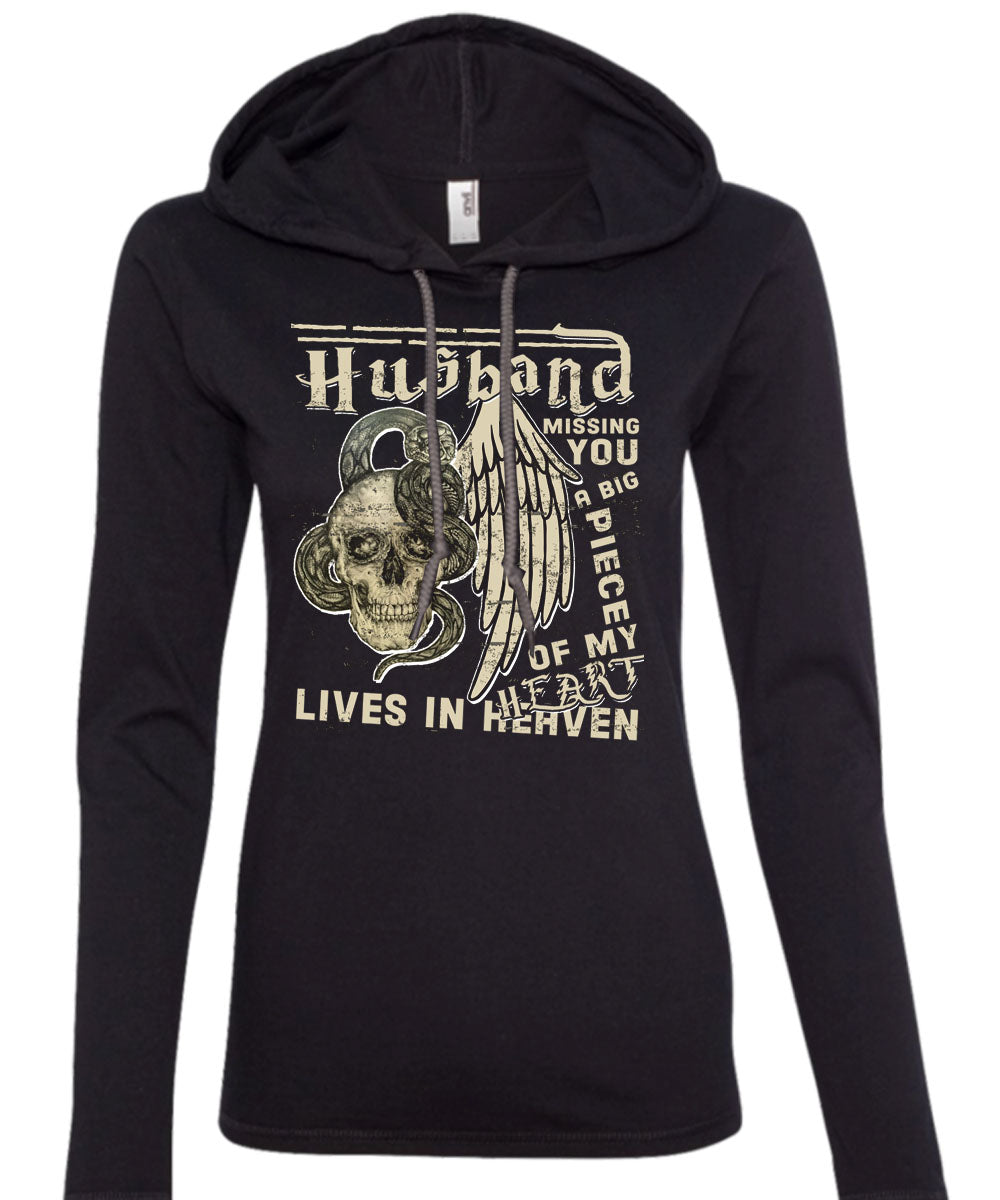 Husband Missing You A Big Piece Of My Heart T Shirt, Being A Wife T Shirt (Anvil Ladies Ringspun Hooded)