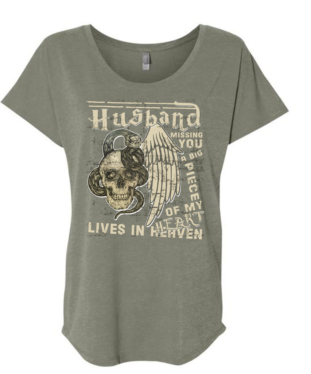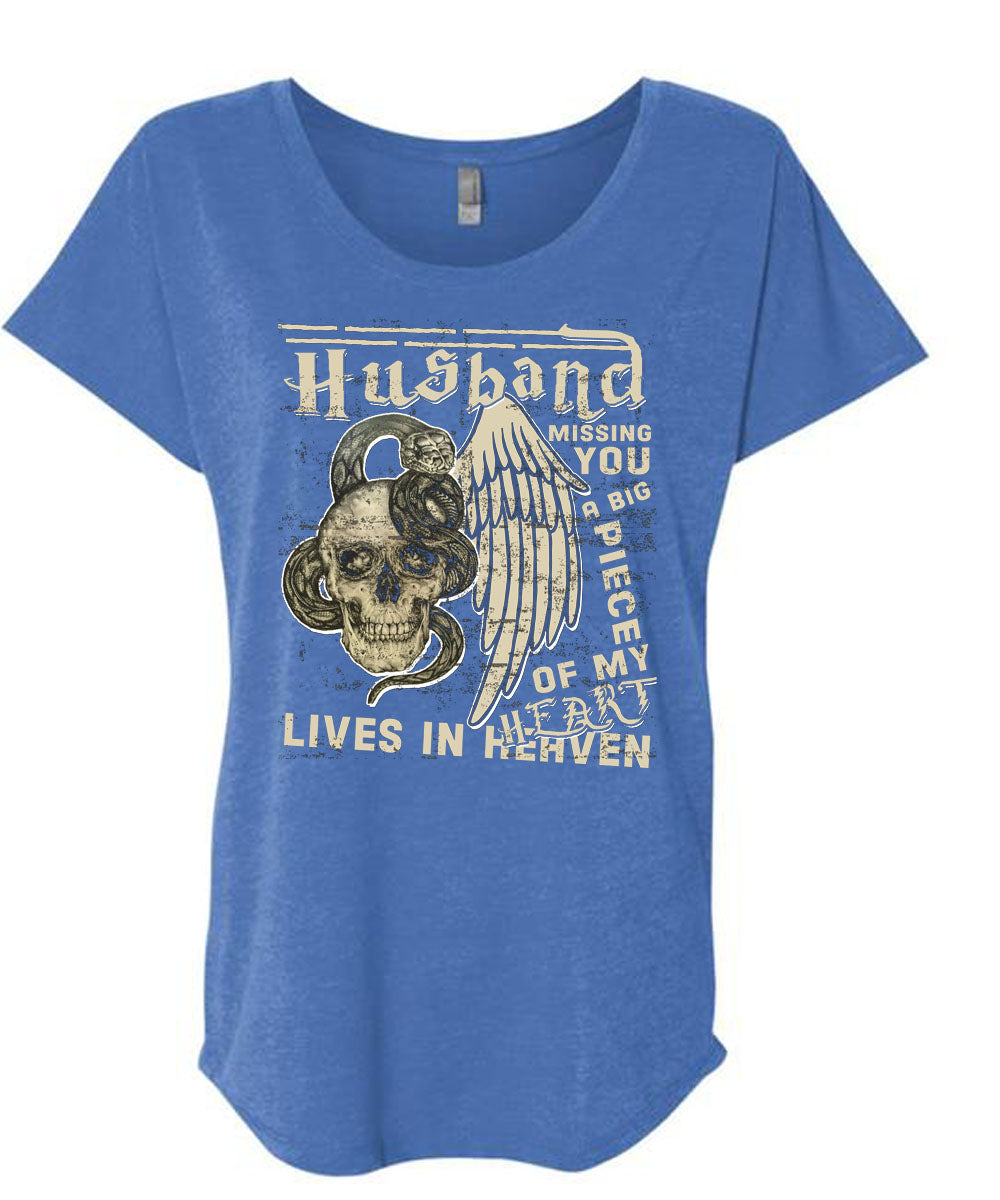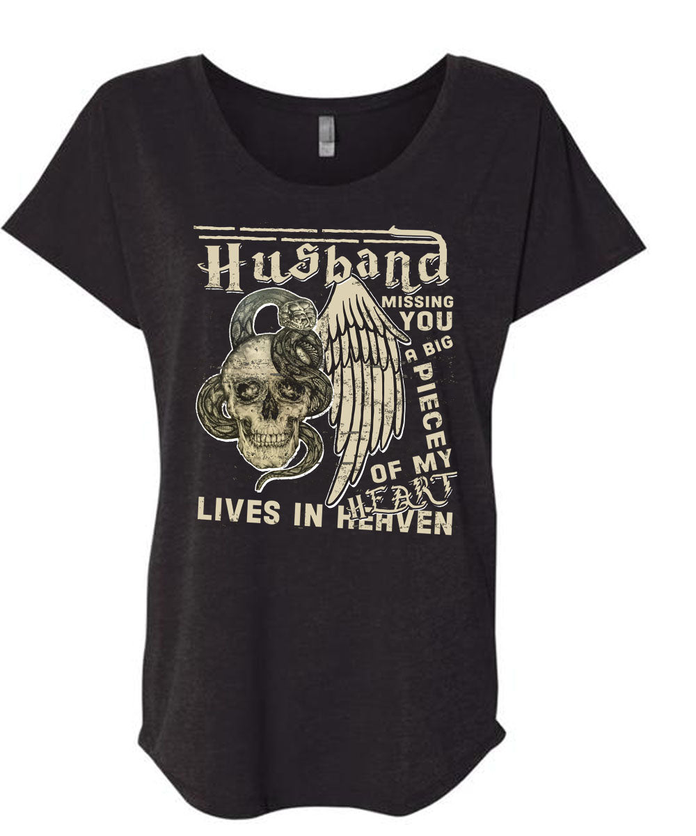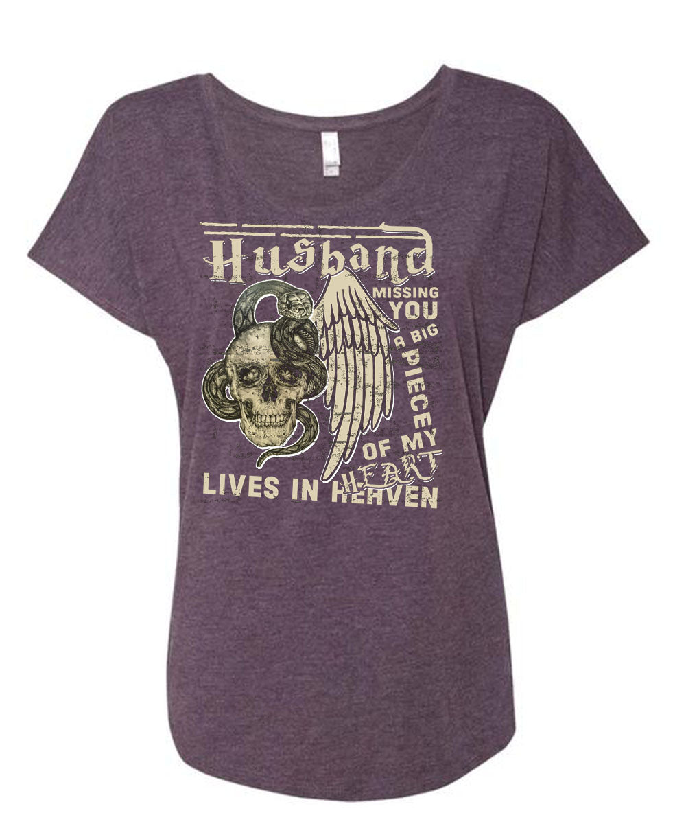 Husband Missing You A Big Piece Of My Heart T Shirt, Being A Wife T Shirt, Cool Shirt (Ladies' Triblend Dolman Sleeve)