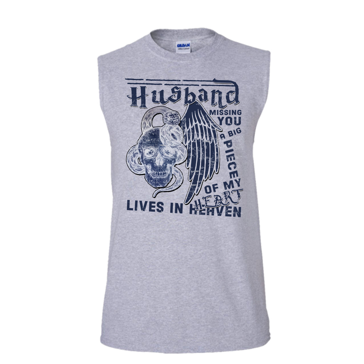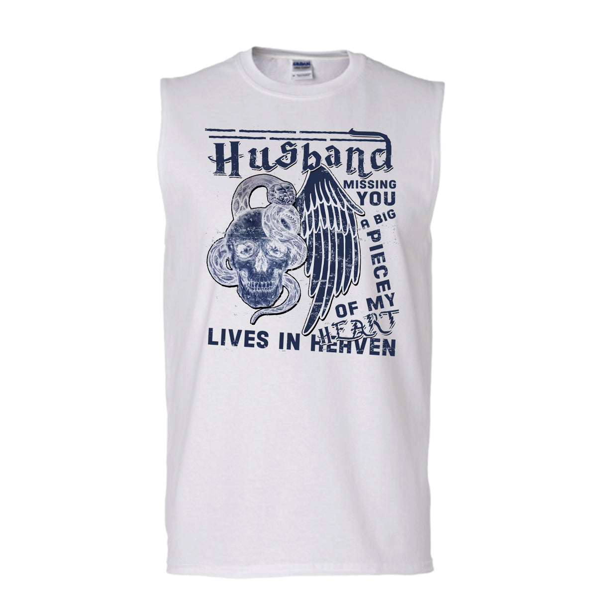 Husband Missing You T Shirt, Lives In Heaven T Shirt, Awesome t-shirts (Men's Cotton Sleeveless)
