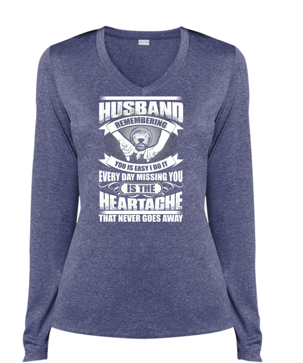 Husband Remembering T Shirt, Every Day Missing You T Shirt, Cool Shirt (Ladies LS Heather V-Neck)