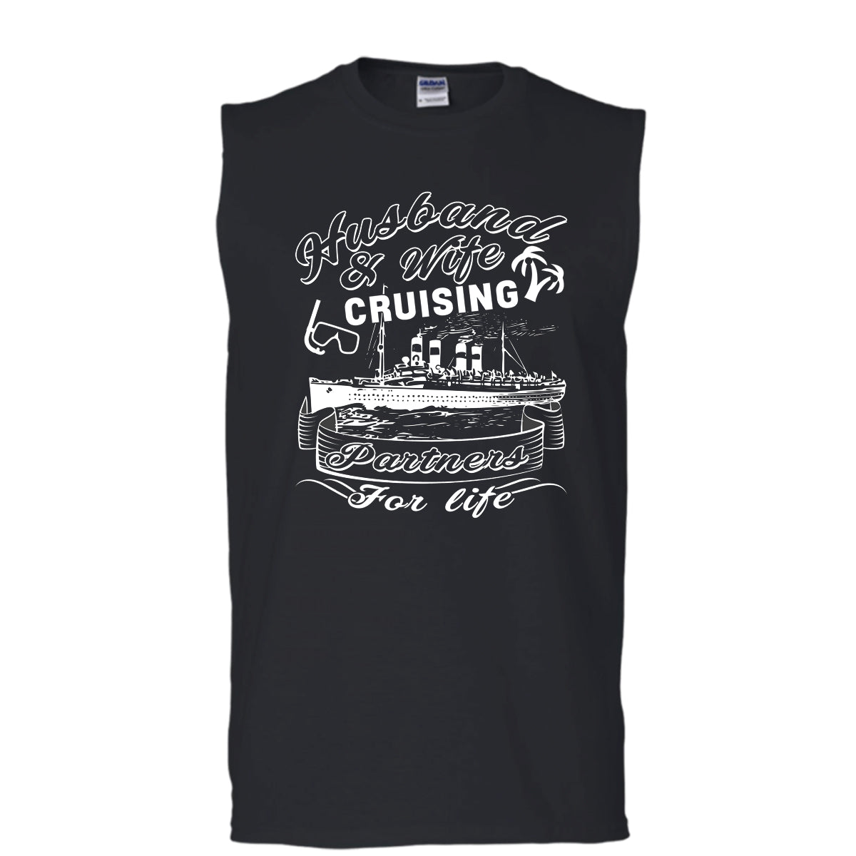 Husband & Wife T Shirt, Cruising Partner For Life T Shirt, Cool T Shirt (Men's Cotton Sleeveless)