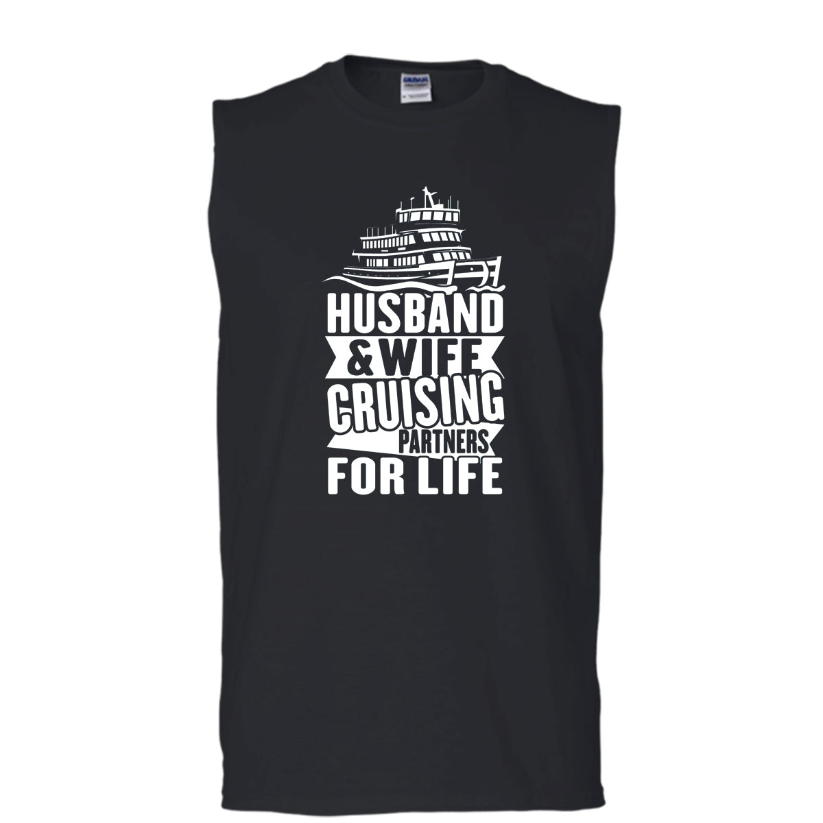 Husband & Wife T Shirt, Cruising Partners For Life T Shirt, Cool T Shirt (Men's Cotton Sleeveless)