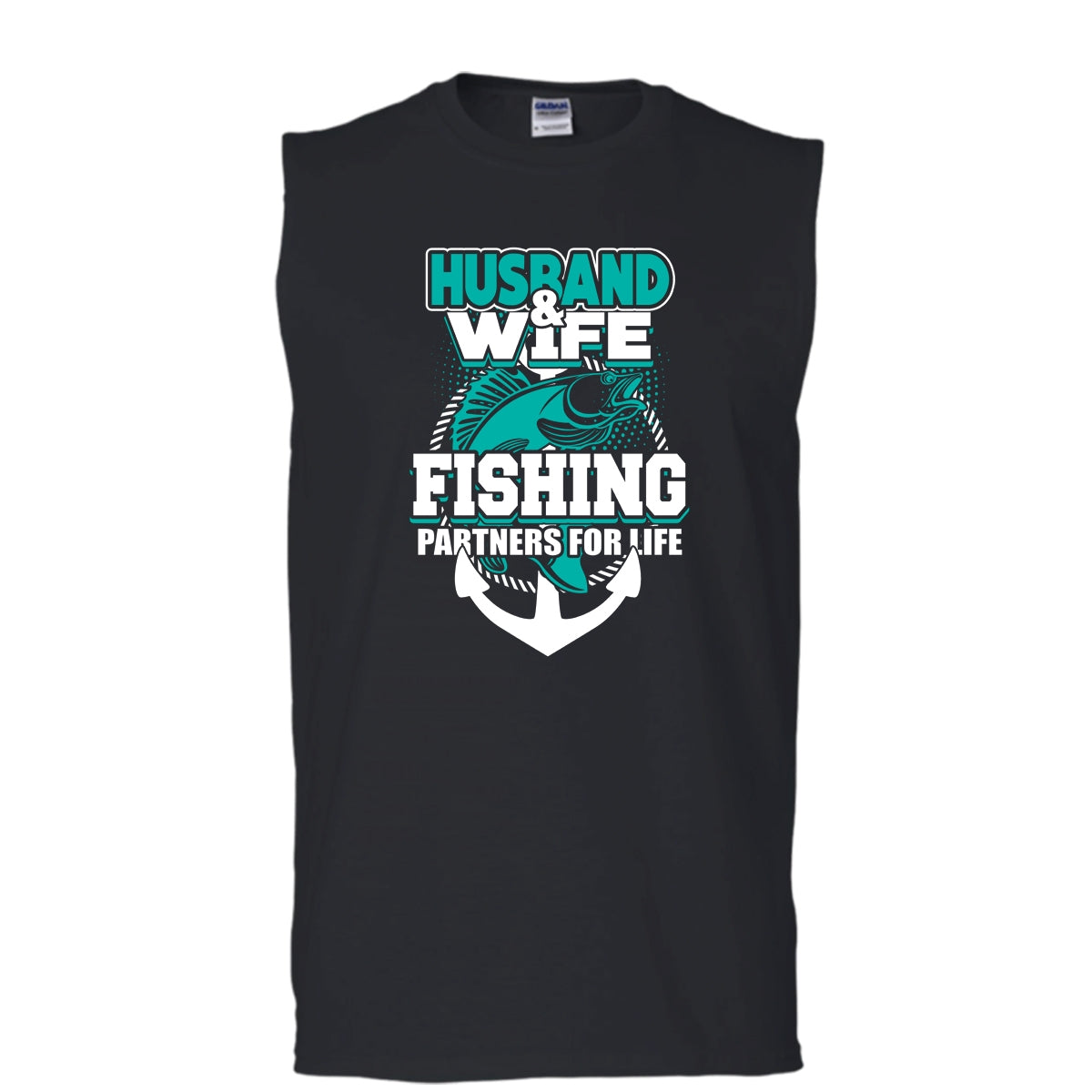 Husband & Wife T Shirt, Fishing Partners For Life T Shirt, Cool T Shirt (Men's Cotton Sleeveless)