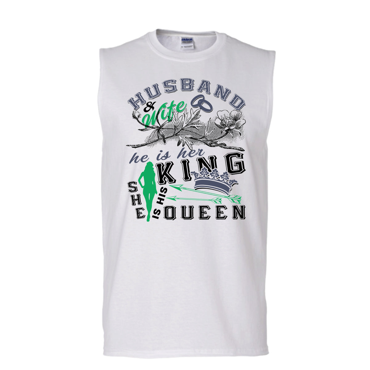 Husband & Wife T Shirt, She Is Queen T Shirt, Awesome t-shirts (Men's Cotton Sleeveless)