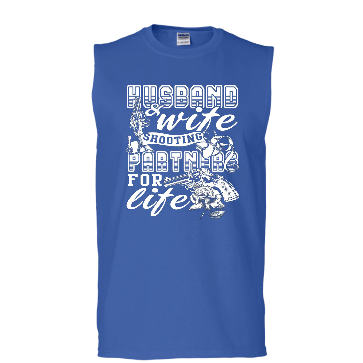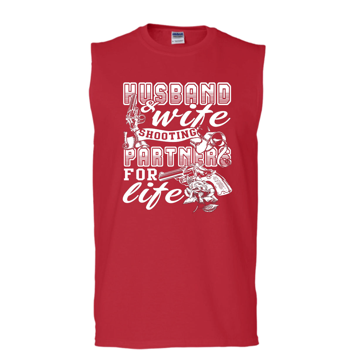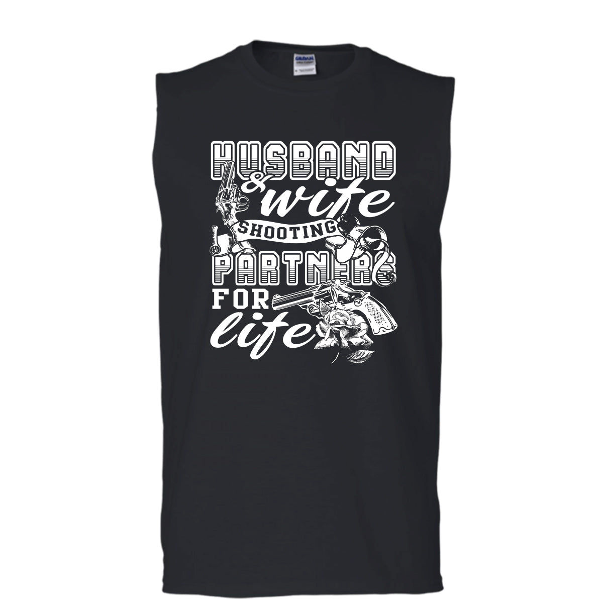 Husband & Wife T Shirt, Shooting Partner For Life T Shirt, Cool T Shirt (Men's Cotton Sleeveless)