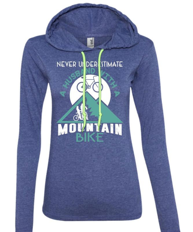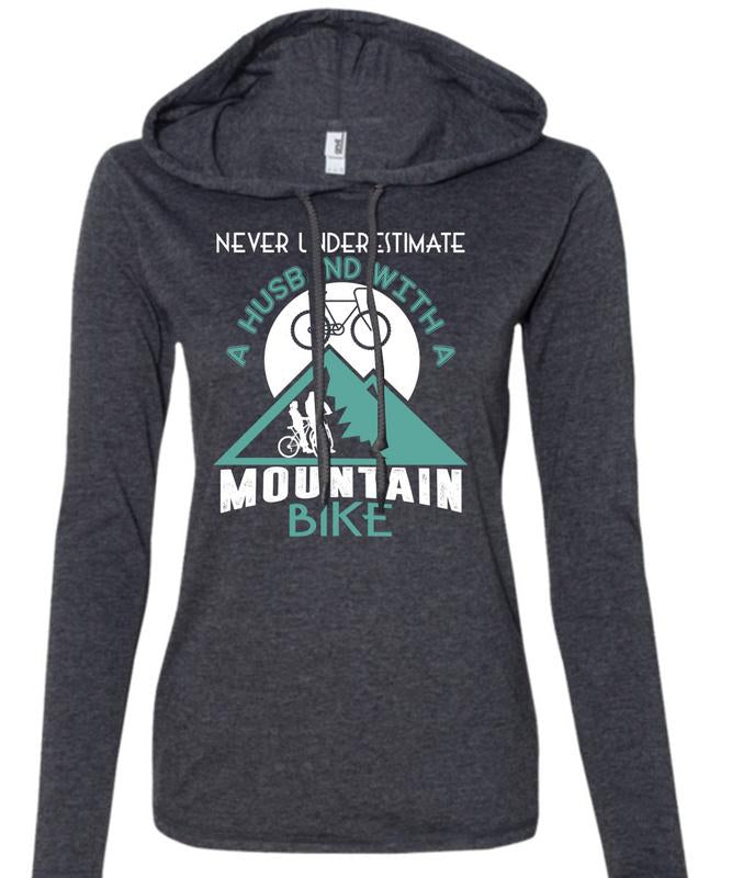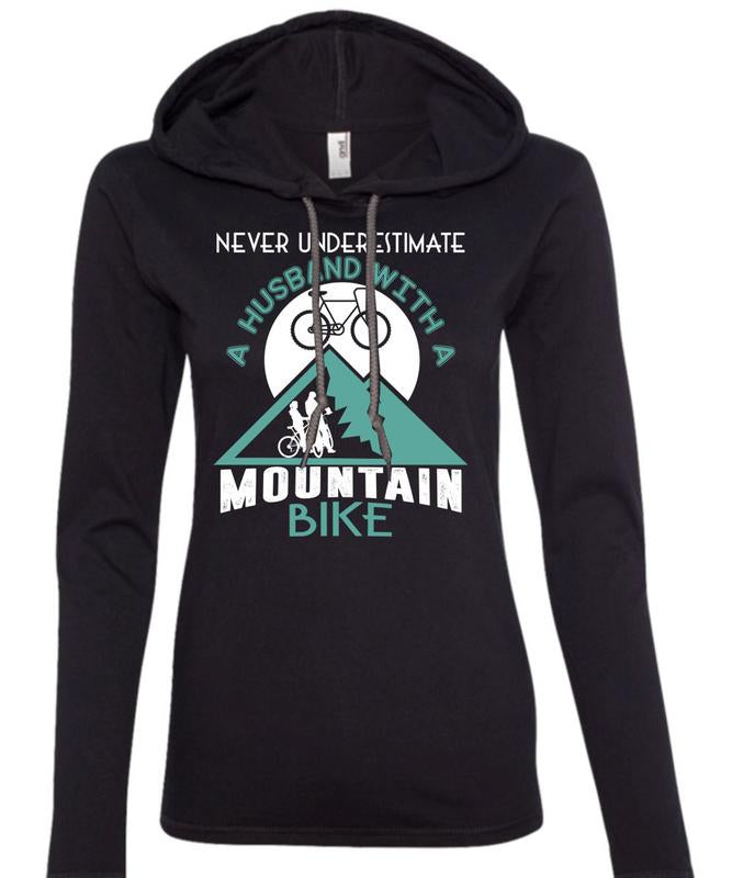 Husband With A Mountain Bike T Shirt, Being A Biker T Shirt (Anvil Ladies Ringspun Hooded)