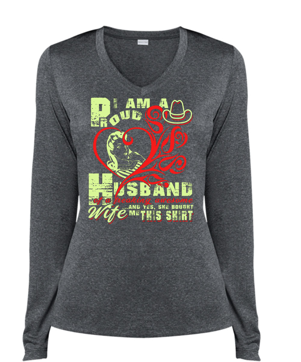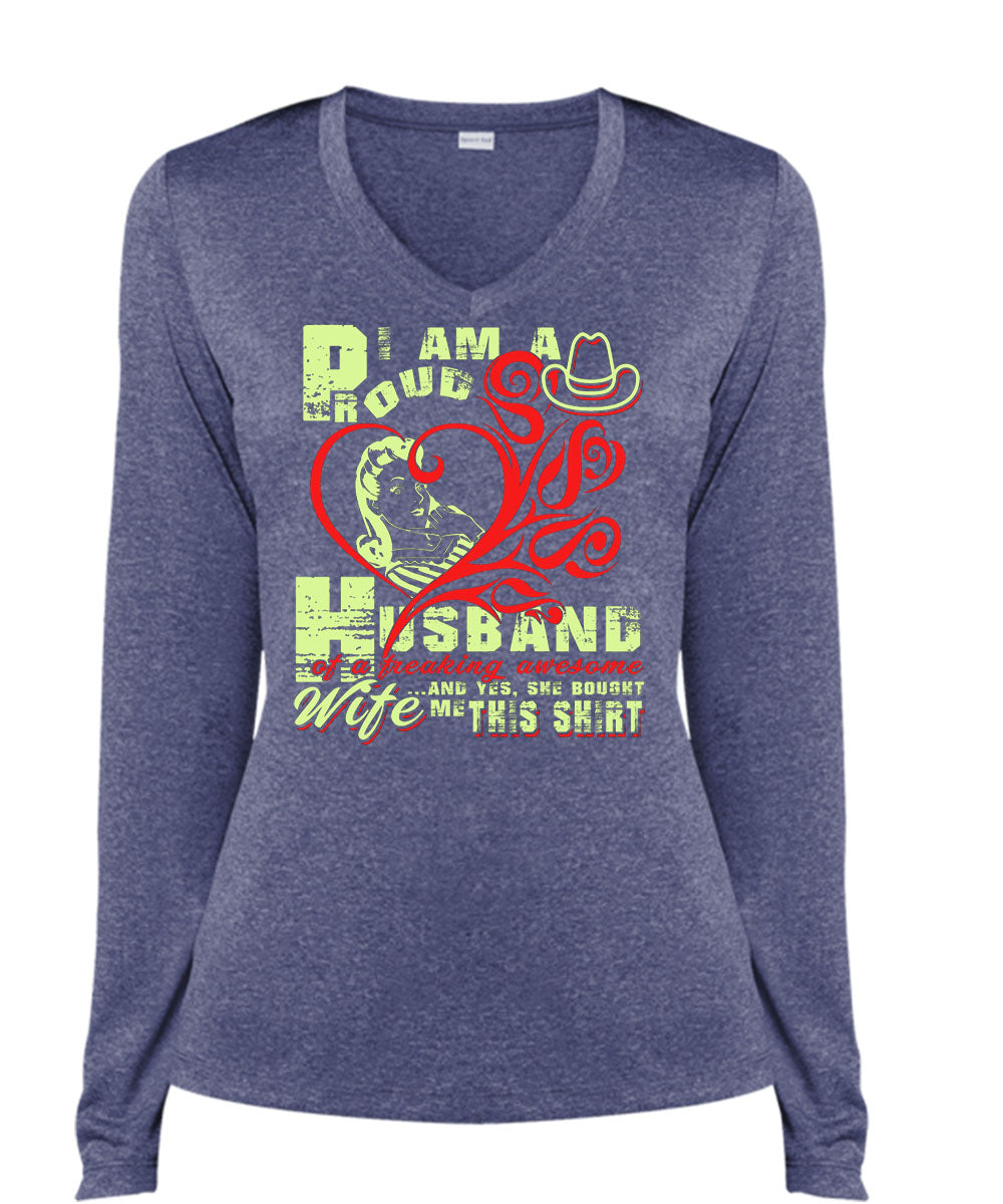 I Am A Proud Husband Of A Freaking Awesome Wife T Shirt, Being A Wife T Shirt, Cool Shirt (Ladies LS Heather V-Neck)