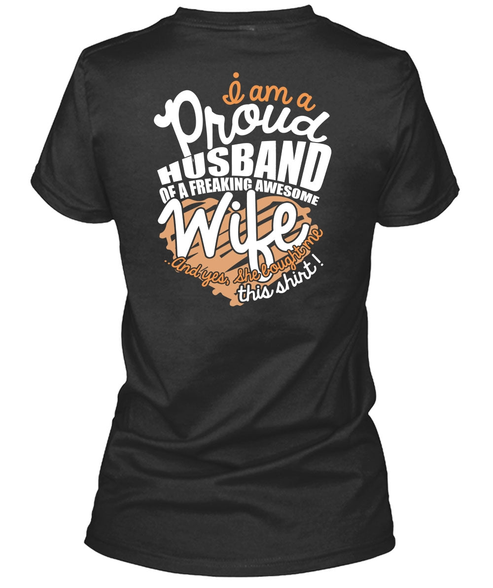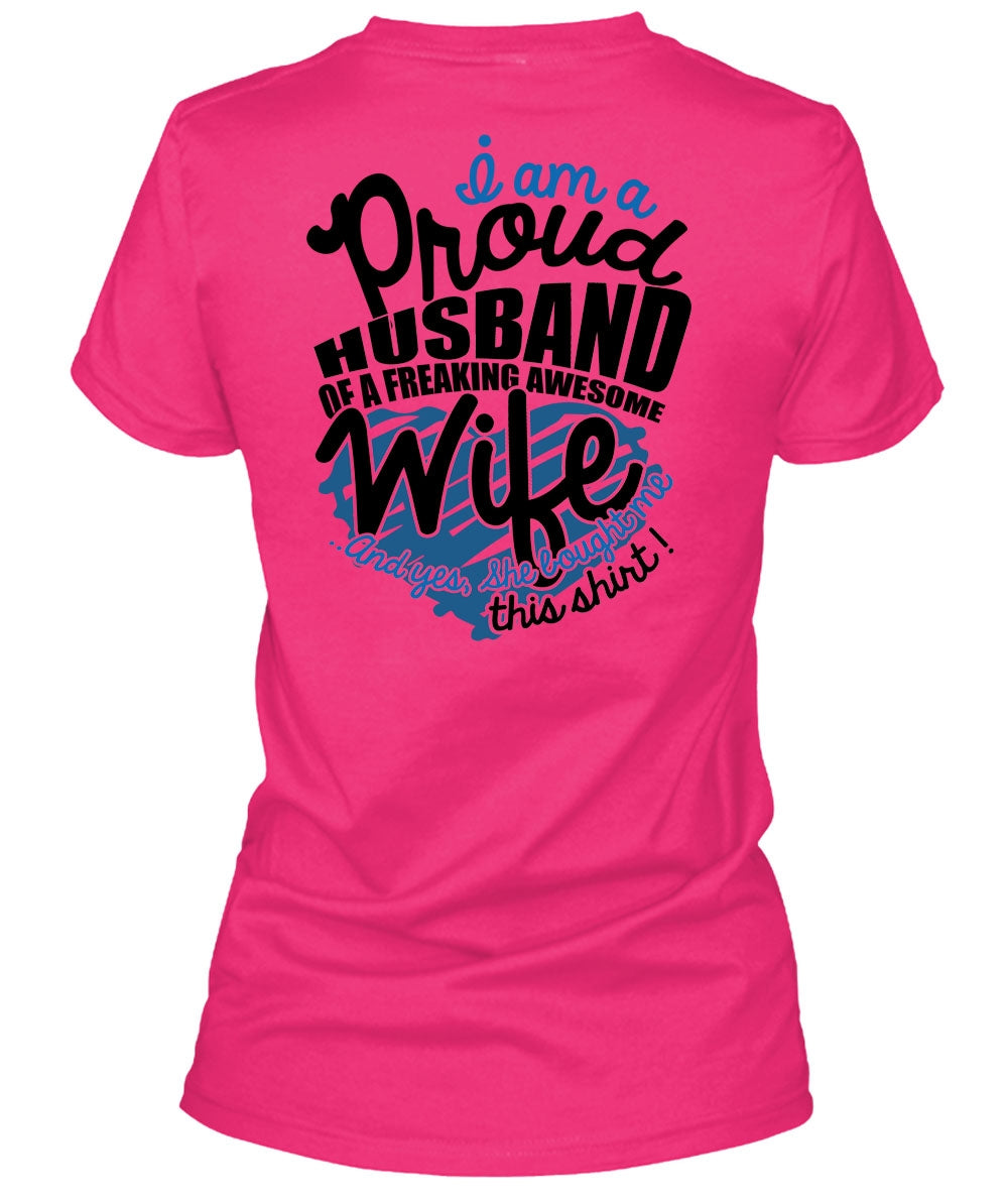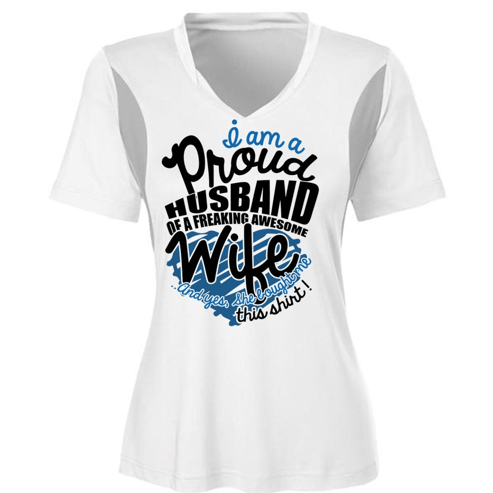 I Am A Proud Husband T Shirt, Freaking Awesome Wife T Shirt, Cool Shirt (Ladies LS Heather V-Neck)