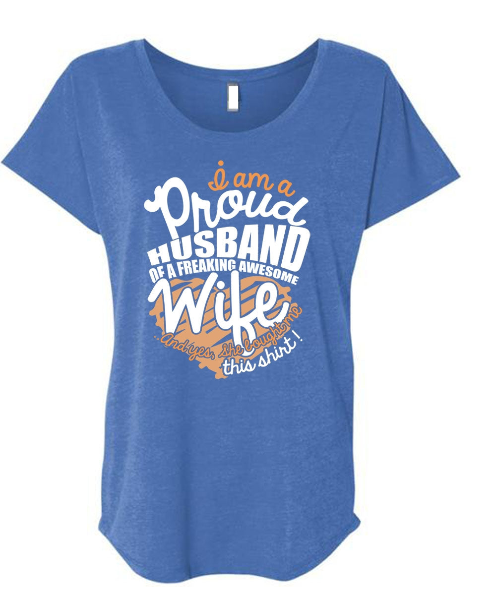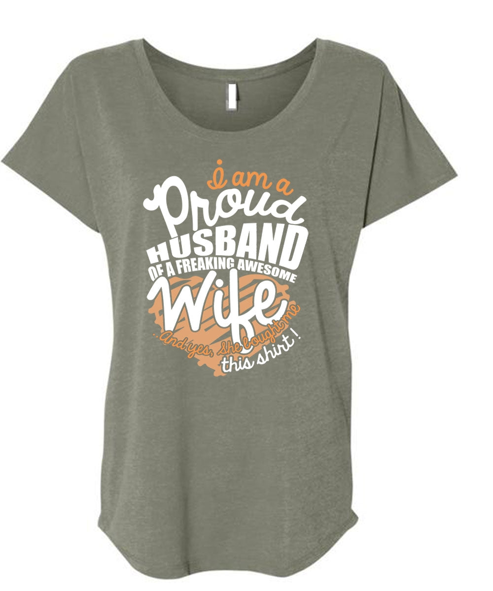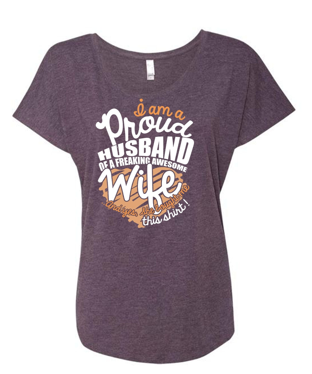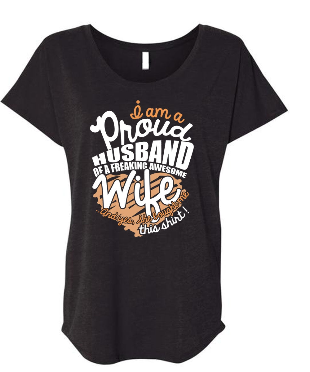 I Am A Proud Husband T Shirt, Freaking Awesome Wife T Shirt, Cool Shirt (Ladies' Triblend Dolman Sleeve)