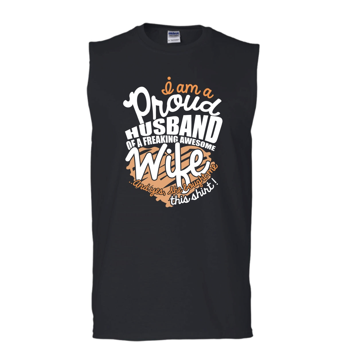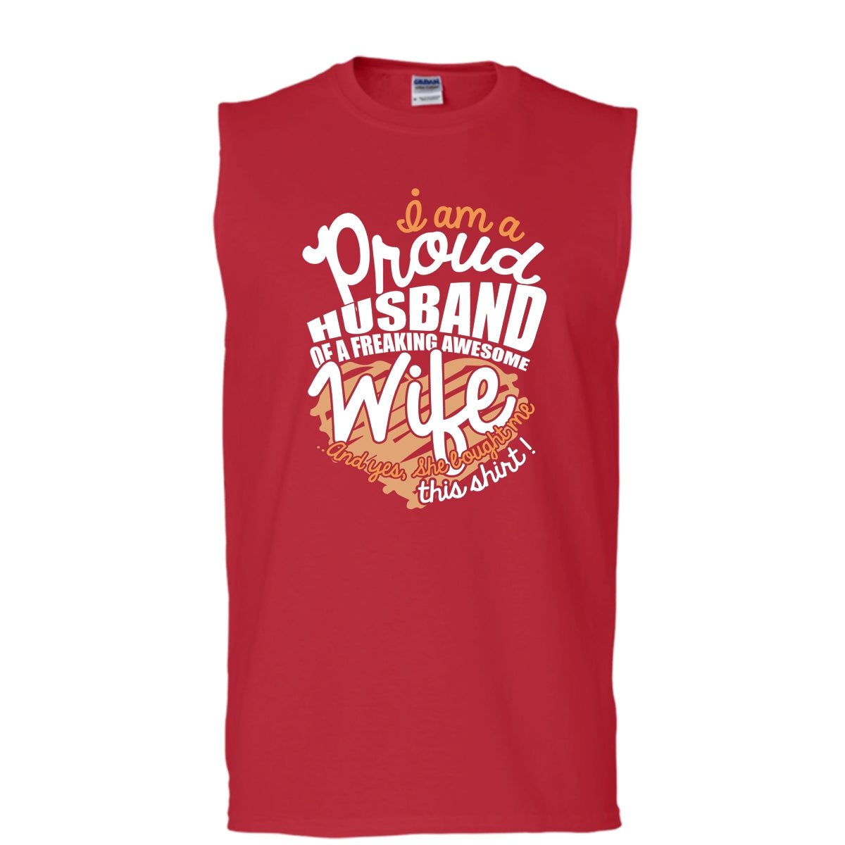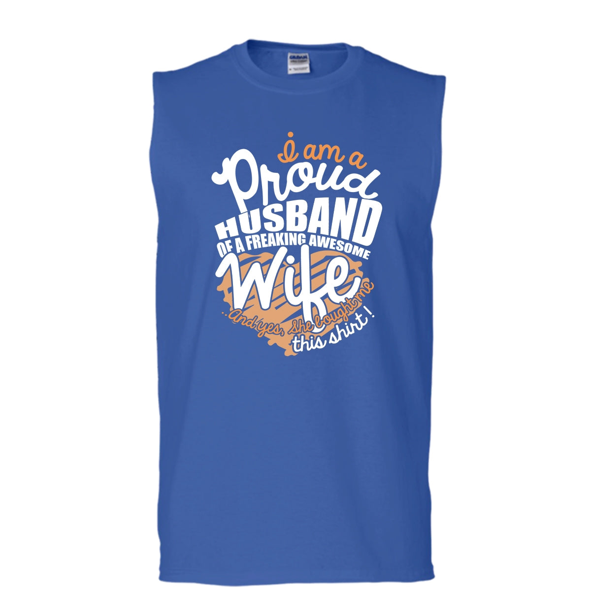 I Am A Proud Husband T Shirt, Freaking Awesome Wife T Shirt, Cool T Shirt (Men's Cotton Sleeveless)