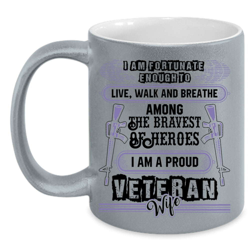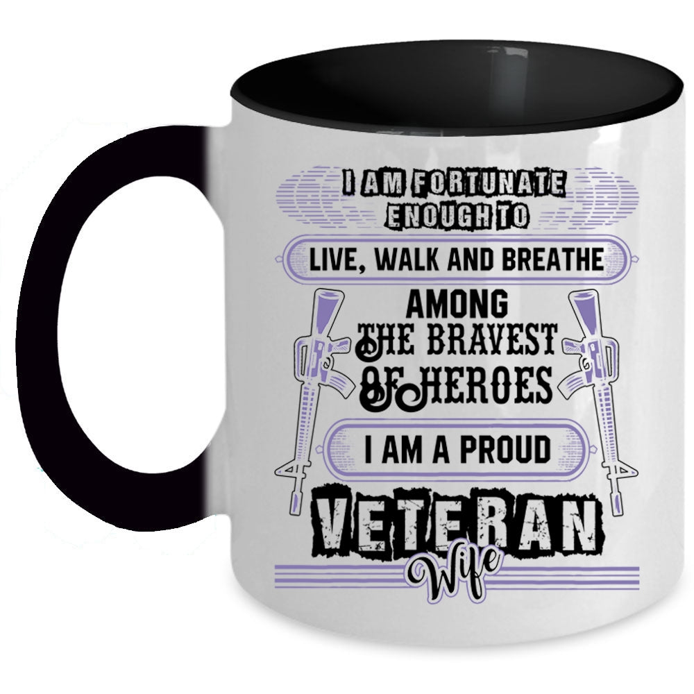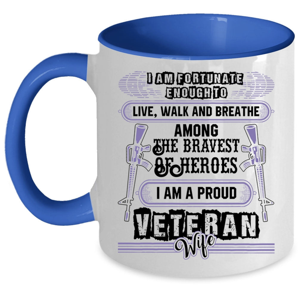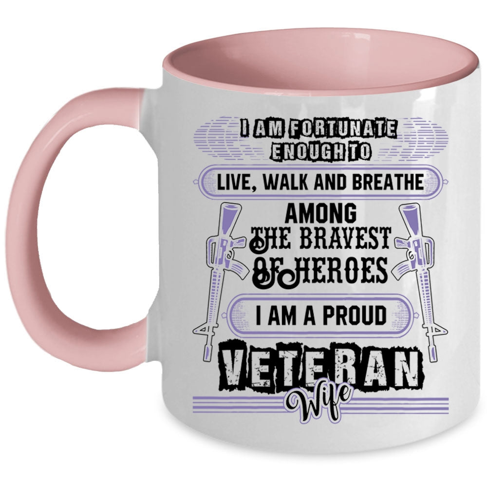 I Am A Proud Veteran Wife Coffee Mug, I Am Fortunate Enough To Live Accent Mug
