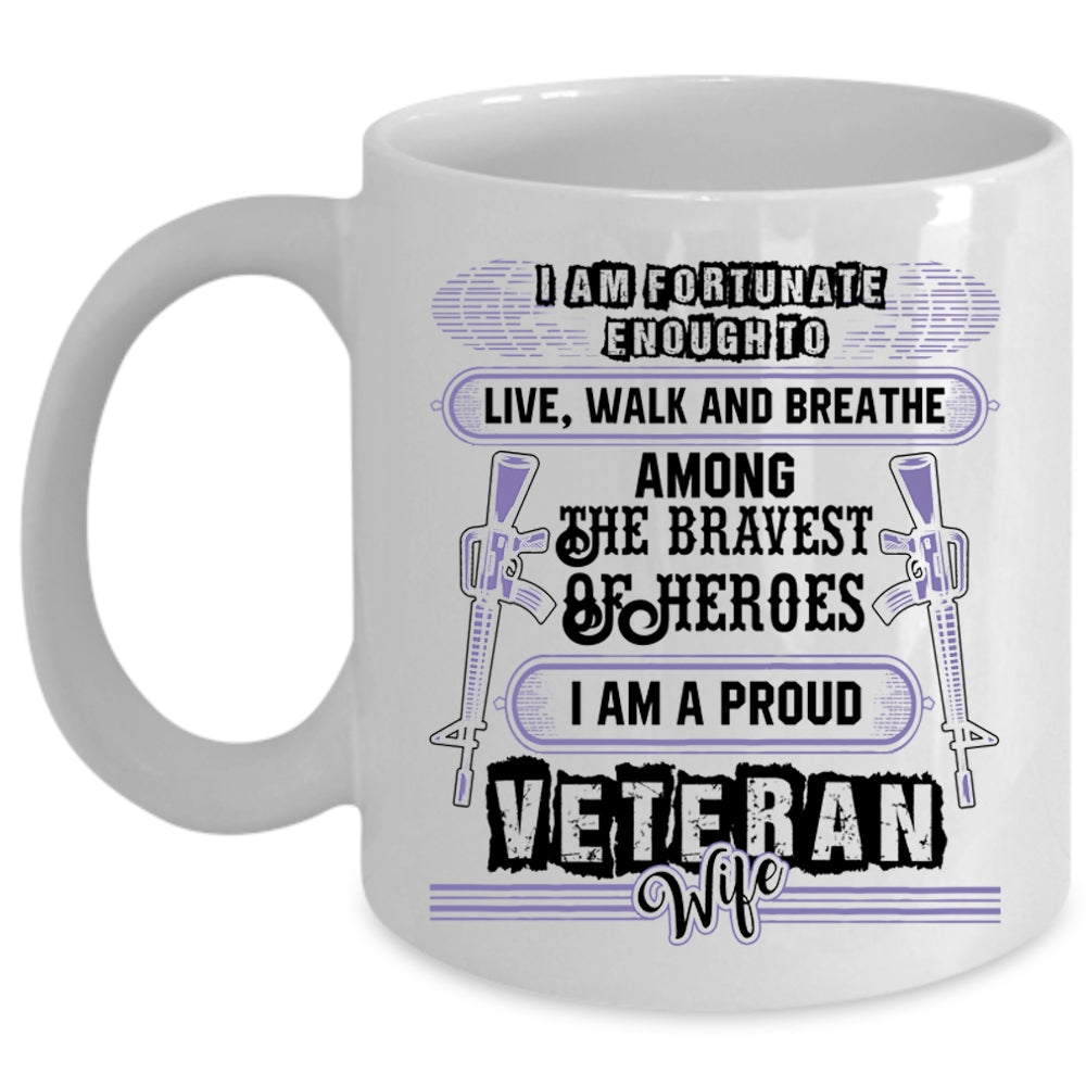 I Am A Proud Veteran Wife Coffee Mug, I Am Fortunate Enough To Live Cup