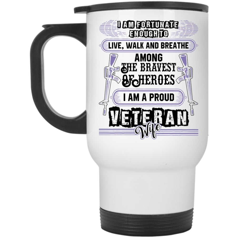 I Am A Proud Veteran Wife Travel Mug, I Am Fortunate Enough To Live Mug